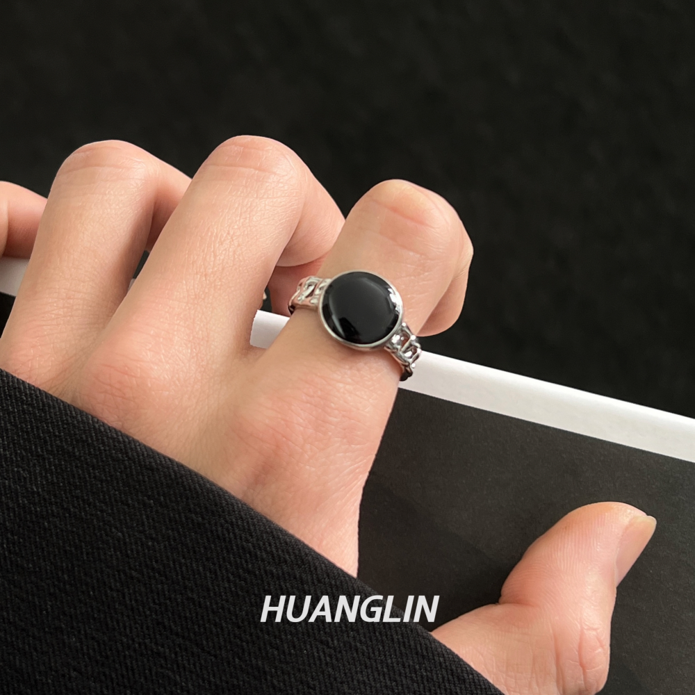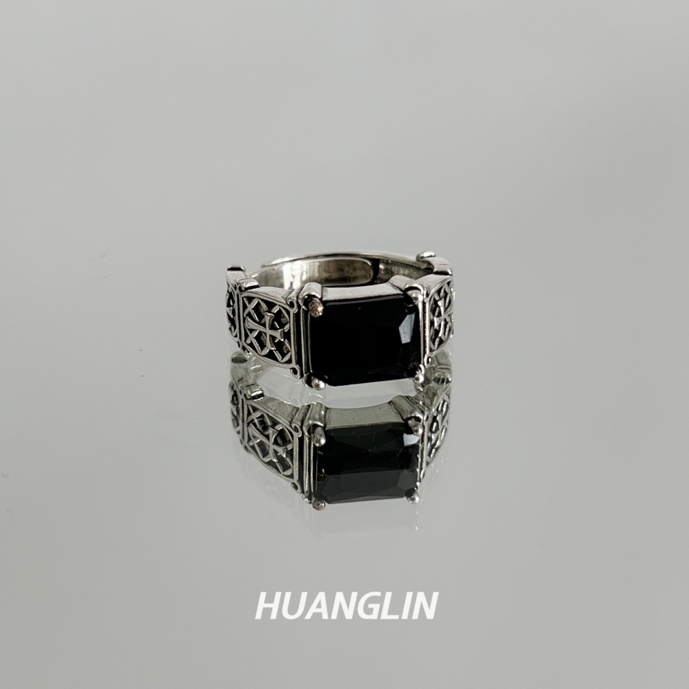 男士方形宝石戒指个性霸气潮流嘻哈单身戒黑色石开口情侣指环男女