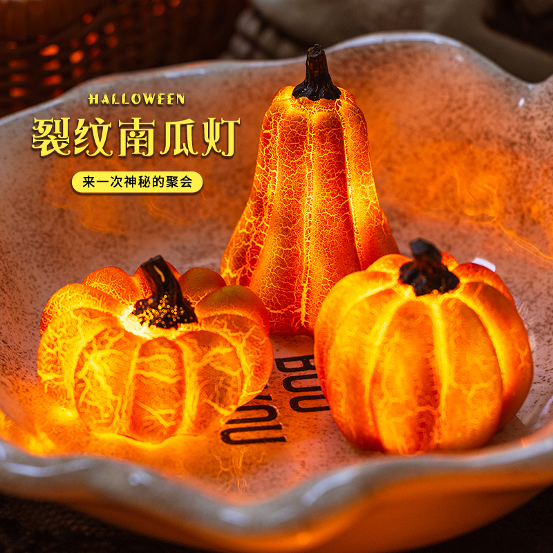 万圣节装饰品发光裂纹南瓜灯桌面摆件派对幼儿园布置房间家居好物