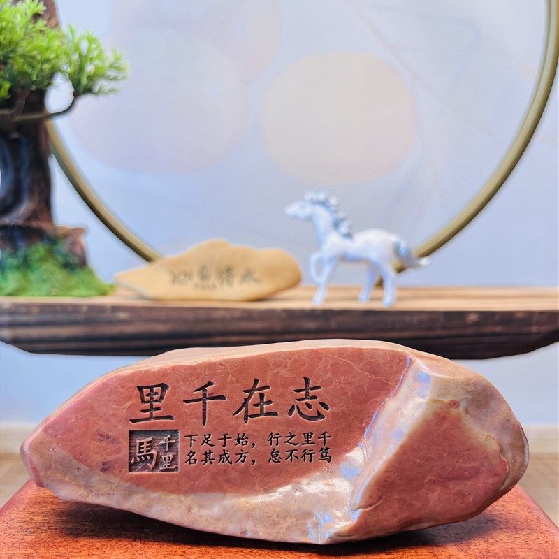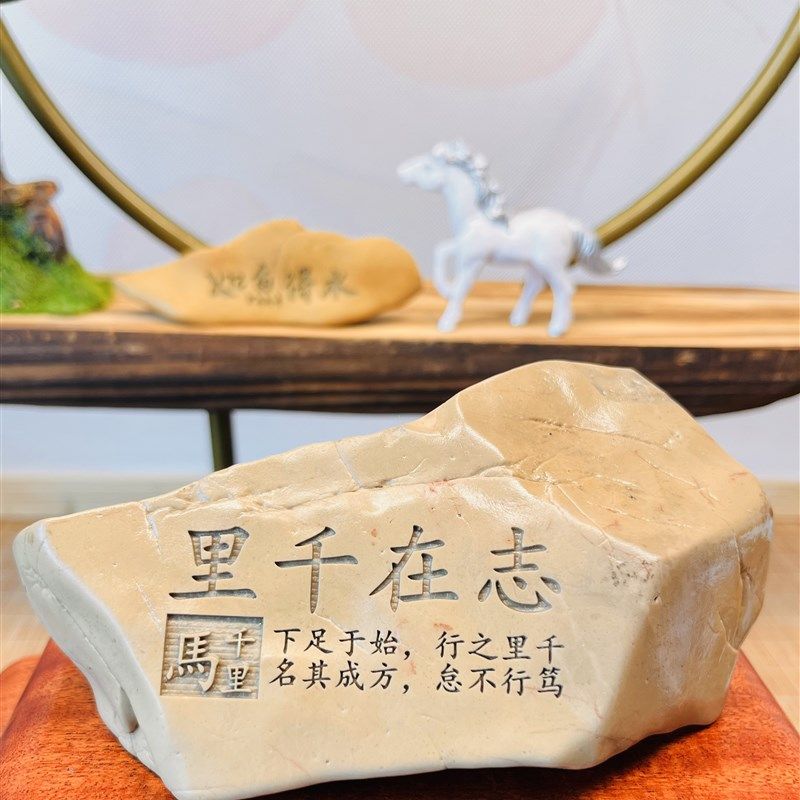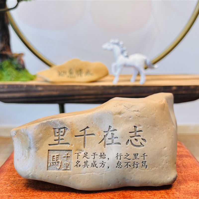 一物一拍[志在千里]题材新疆戈壁石刻字桌面摆件花盆鱼缸造景