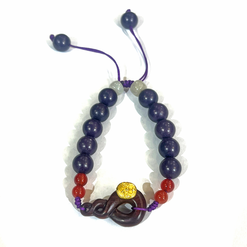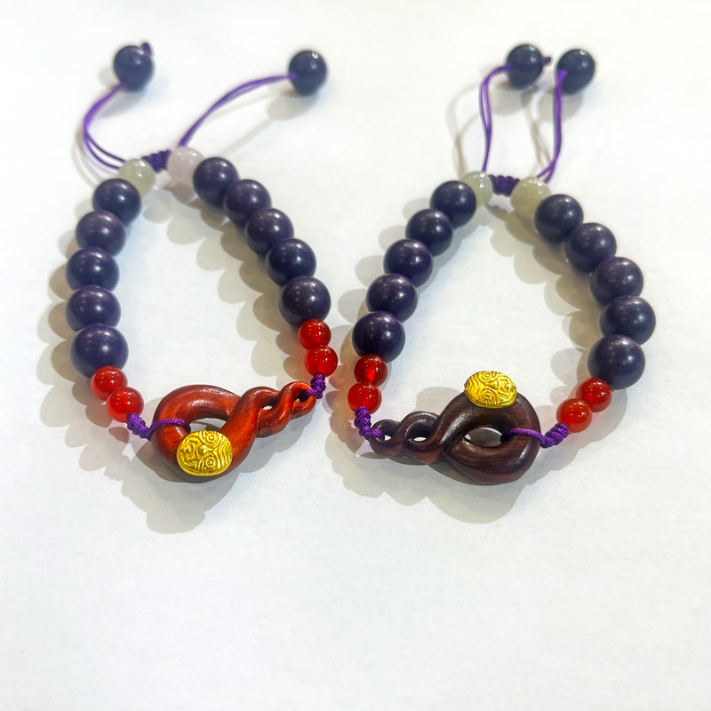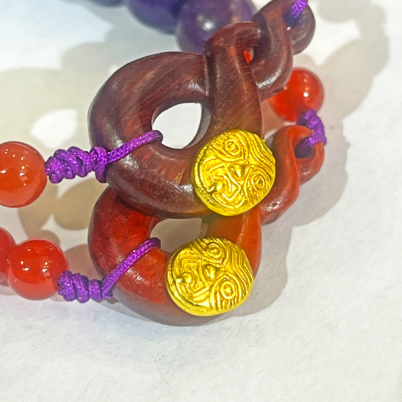 合香珠 玛瑙和田玉红檀木镶嵌扎基拉姆手链 串珠手工编织时尚调节