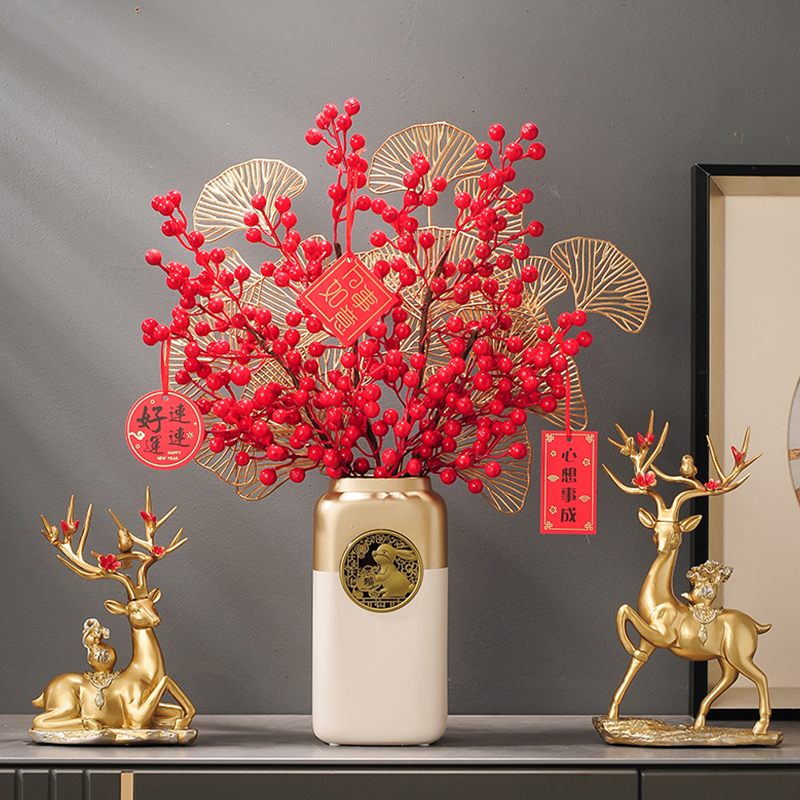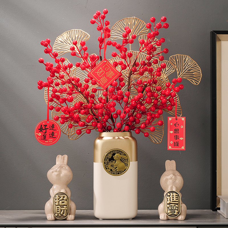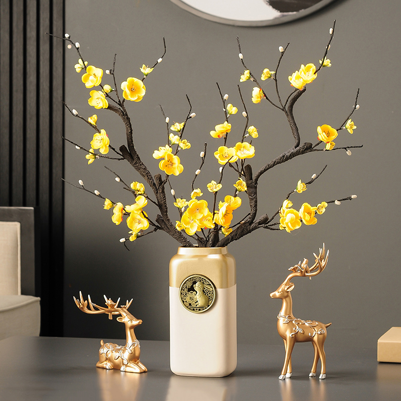 金兔纳福梅花花瓶新中式摆件电视柜酒柜装饰品乔迁新居礼品轻奢