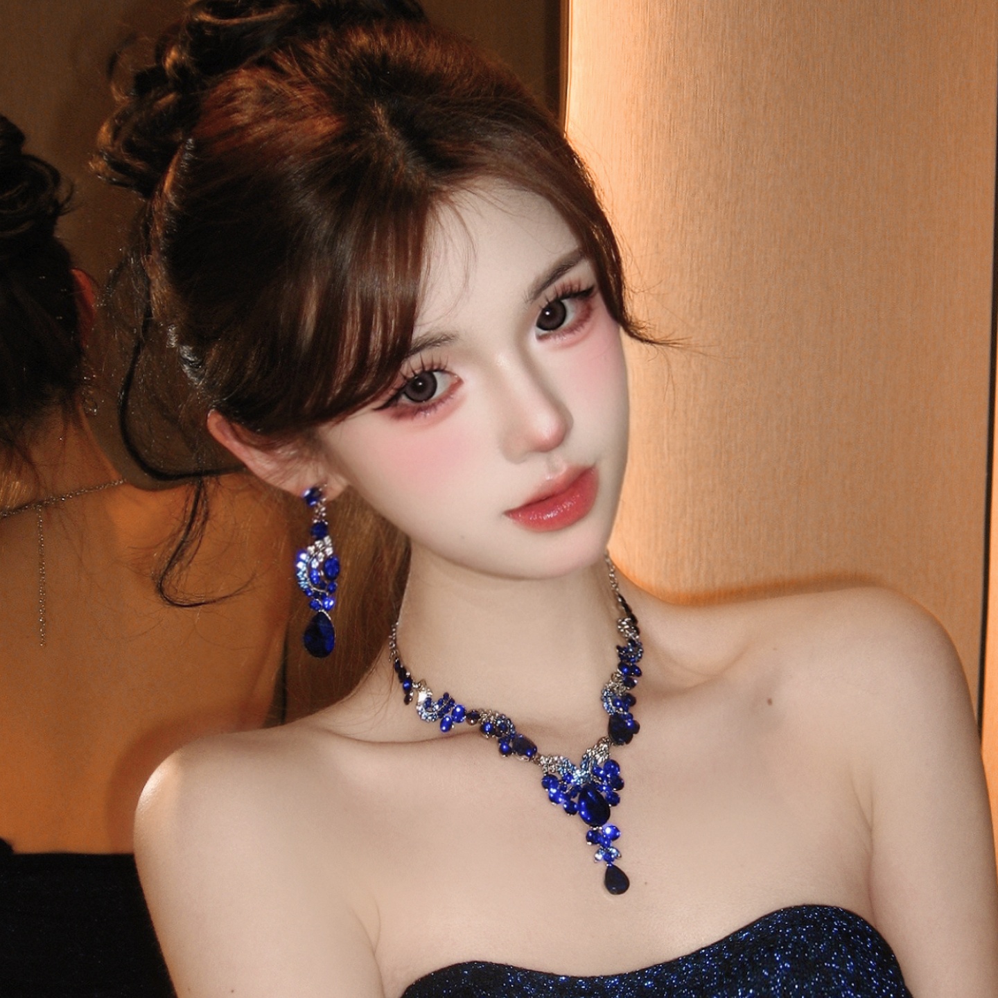 法式蓝色水滴项链耳环套装新款女夸张配饰轻奢耳饰高级小众锁骨链