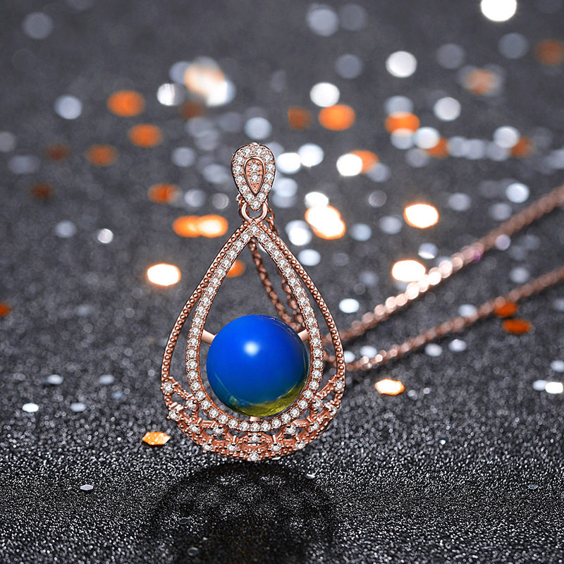 中国风复古装旗袍配饰二代合成蓝珀琥珀水滴吊坠汉服气质仙女项链