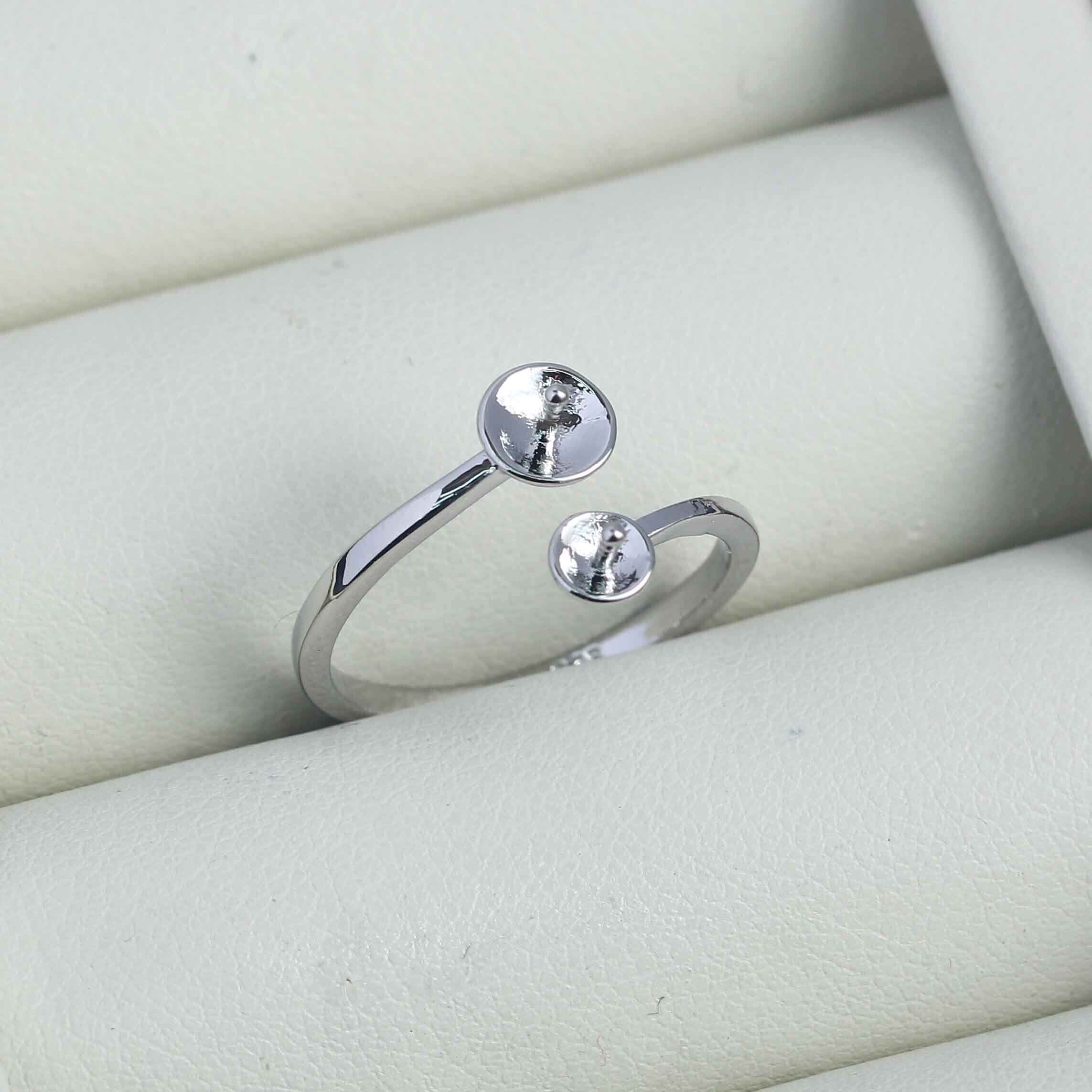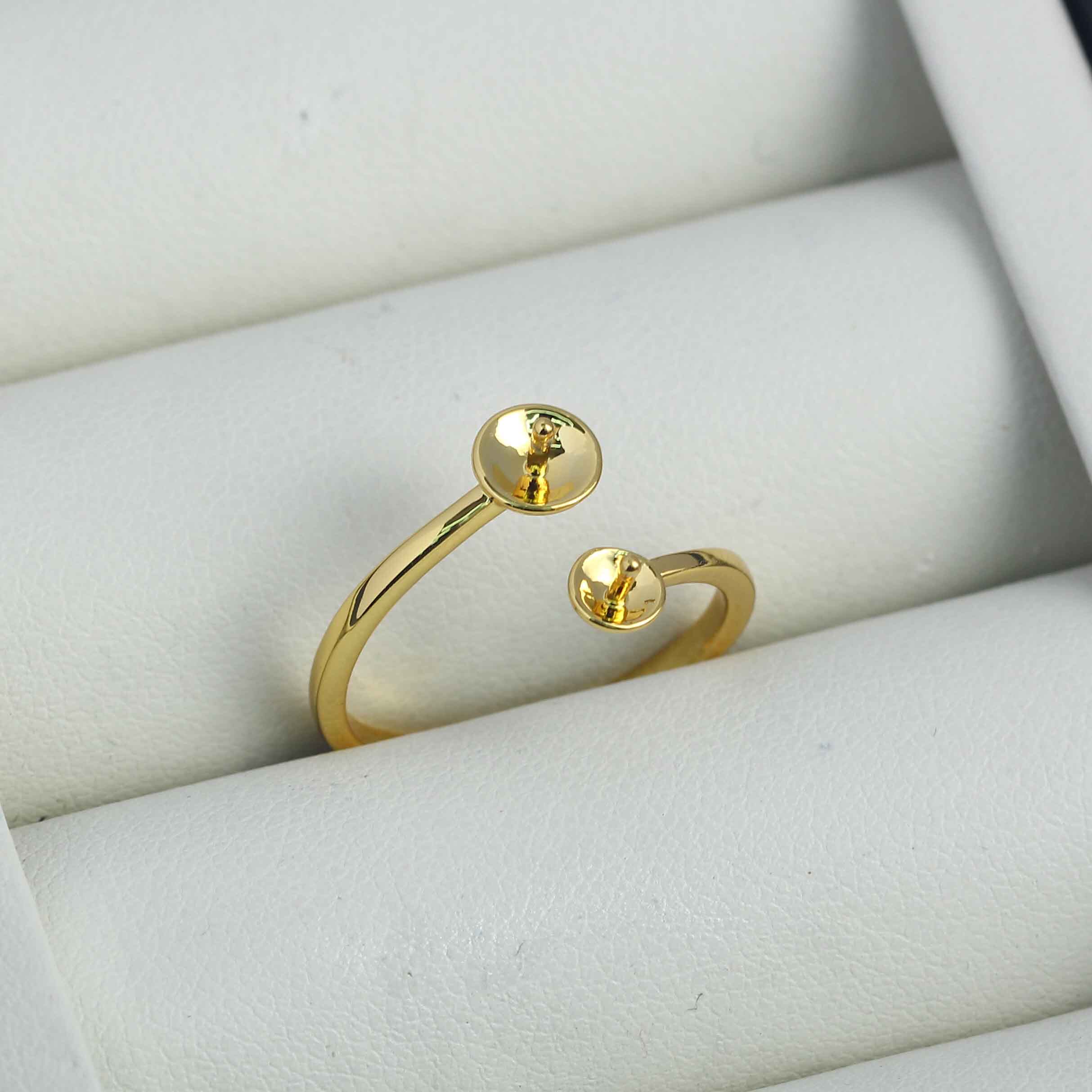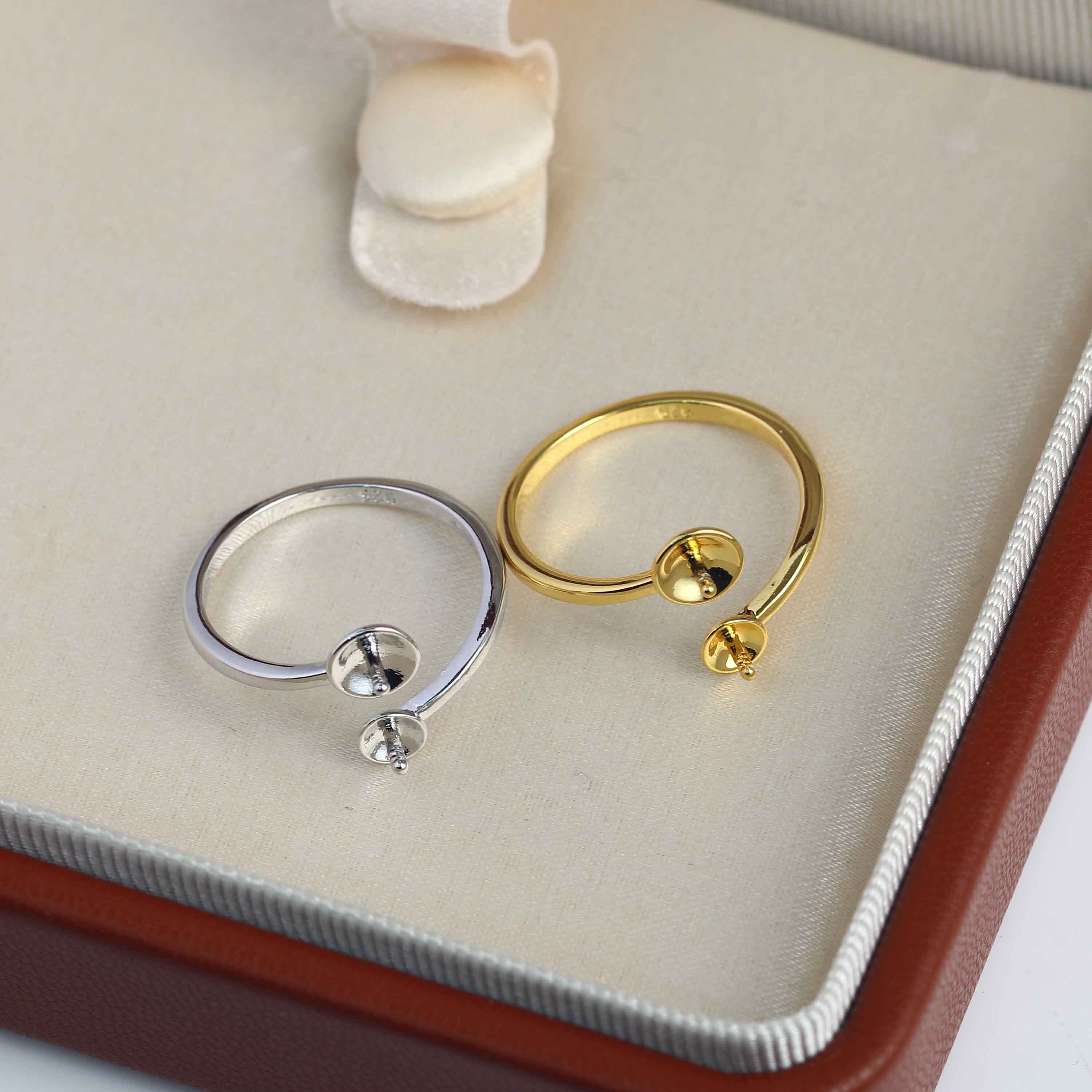 DIY珍珠配件新款铜镀金光面双珠戒指空托时尚百搭简约开口可调节