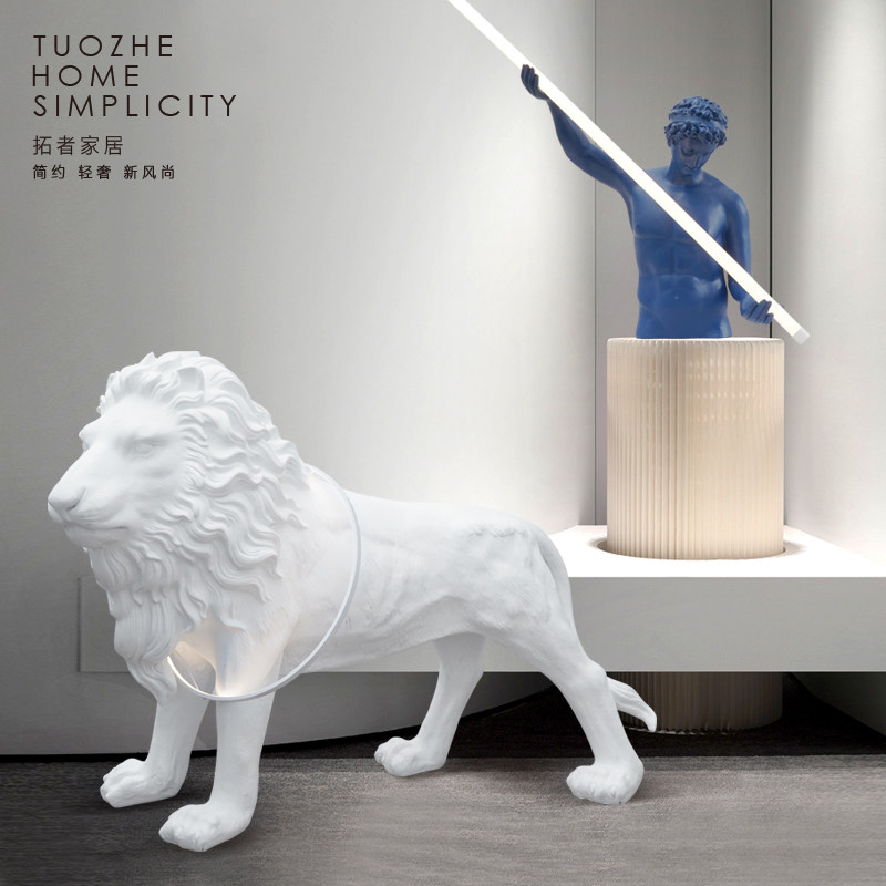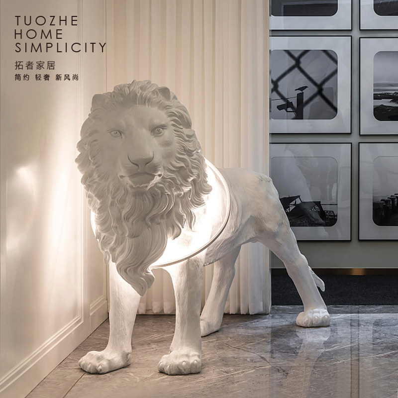 抽象人物雕塑大摆件样板房售楼部酒店玄关艺术落地灯饰狮子装饰品