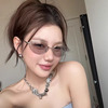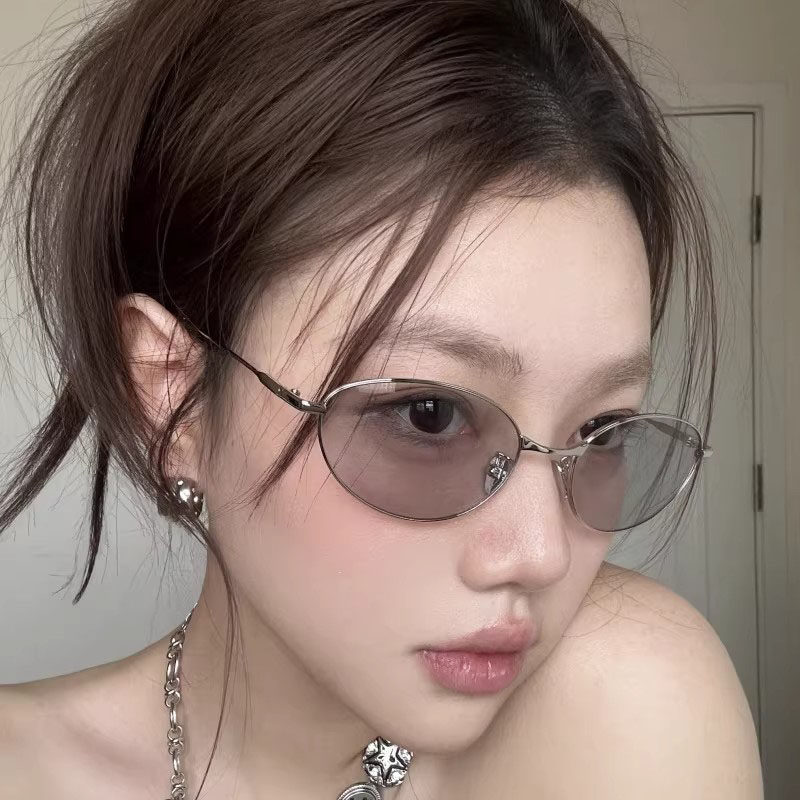 美国复古金属老钱风墨镜女透明灰色高级感方圆脸显瘦猫眼太阳镜潮