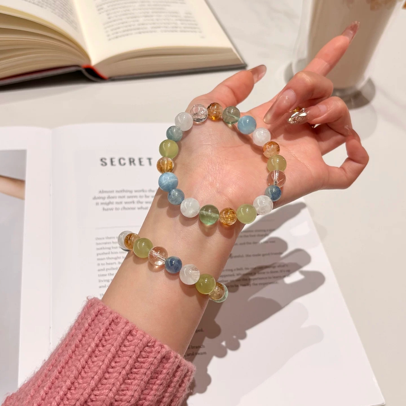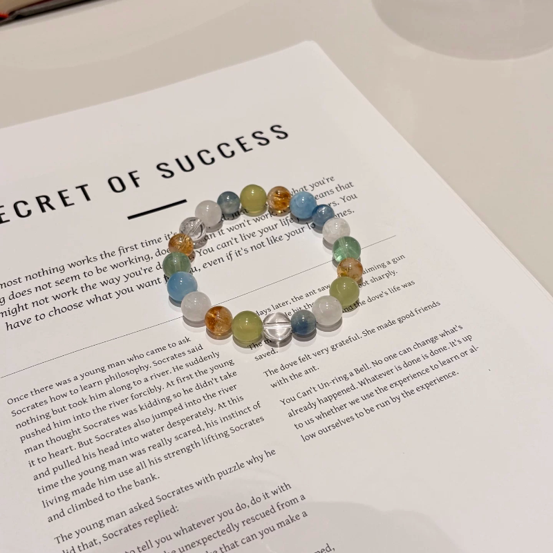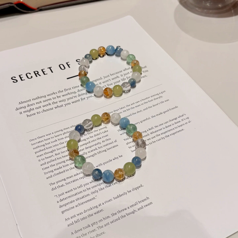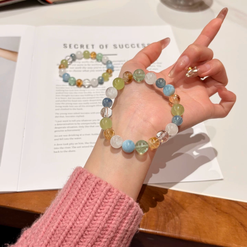 原创天然蓝色系水晶手串海蓝宝复古清冷蓝调风格女小众手饰礼物