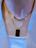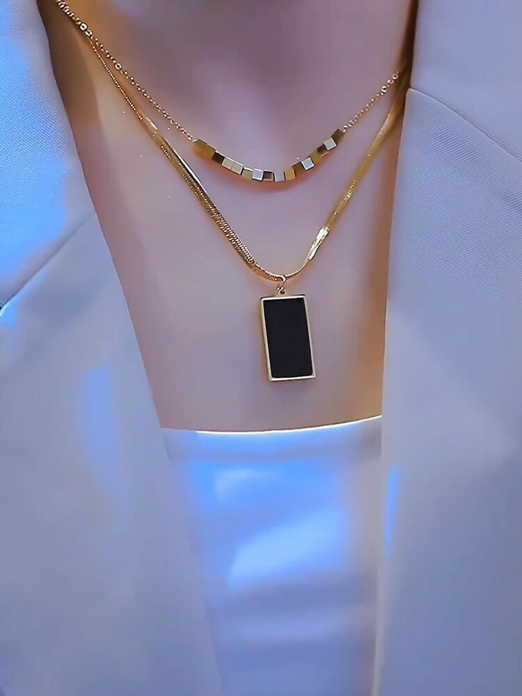 钛钢项链双层叠戴锁骨链女气质黑色方块吊坠时尚百搭颈链2023新款