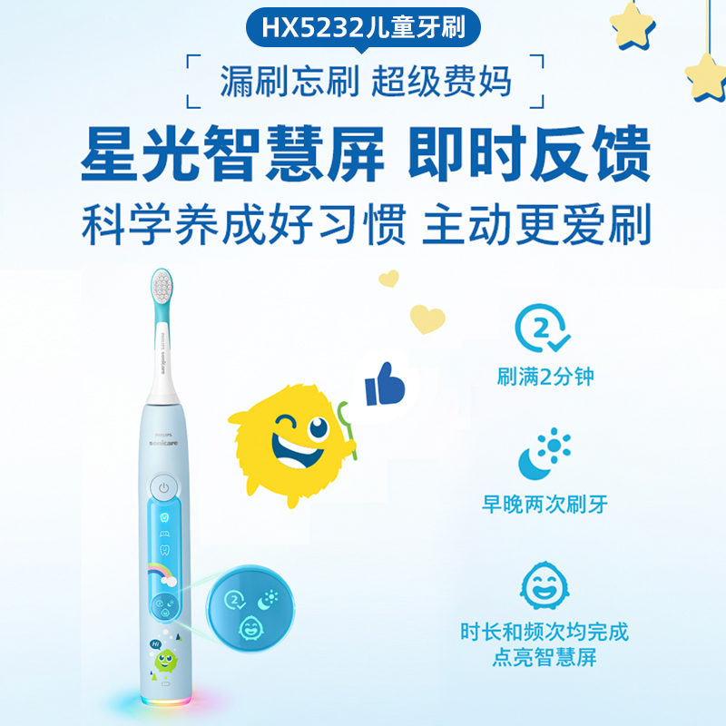 亲子飞利浦电动牙刷成人钻石3系+儿童小飞刷HX5232宝宝礼物3-15岁