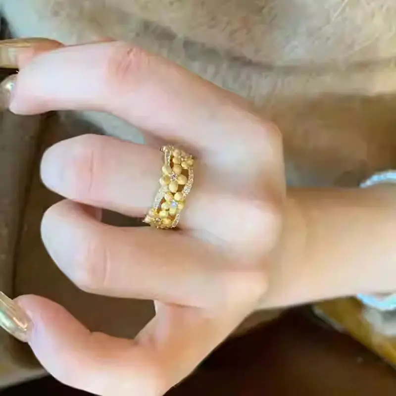 锆石桂花厚款开口戒指轻奢高级感食指戒复古时尚小众气质手饰