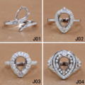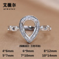 精工制作 925银戒指空托 水滴形 定制代加工镶嵌18k金戒托 活口