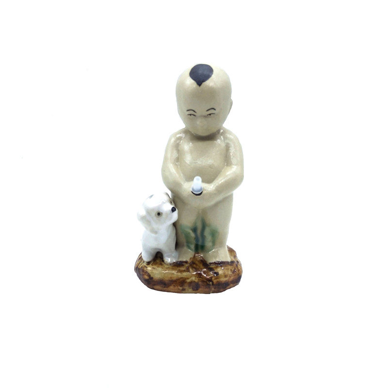 可爱小孩水撒尿童子假山流水喷泉摆件水族鱼缸造景装饰品陶瓷童子