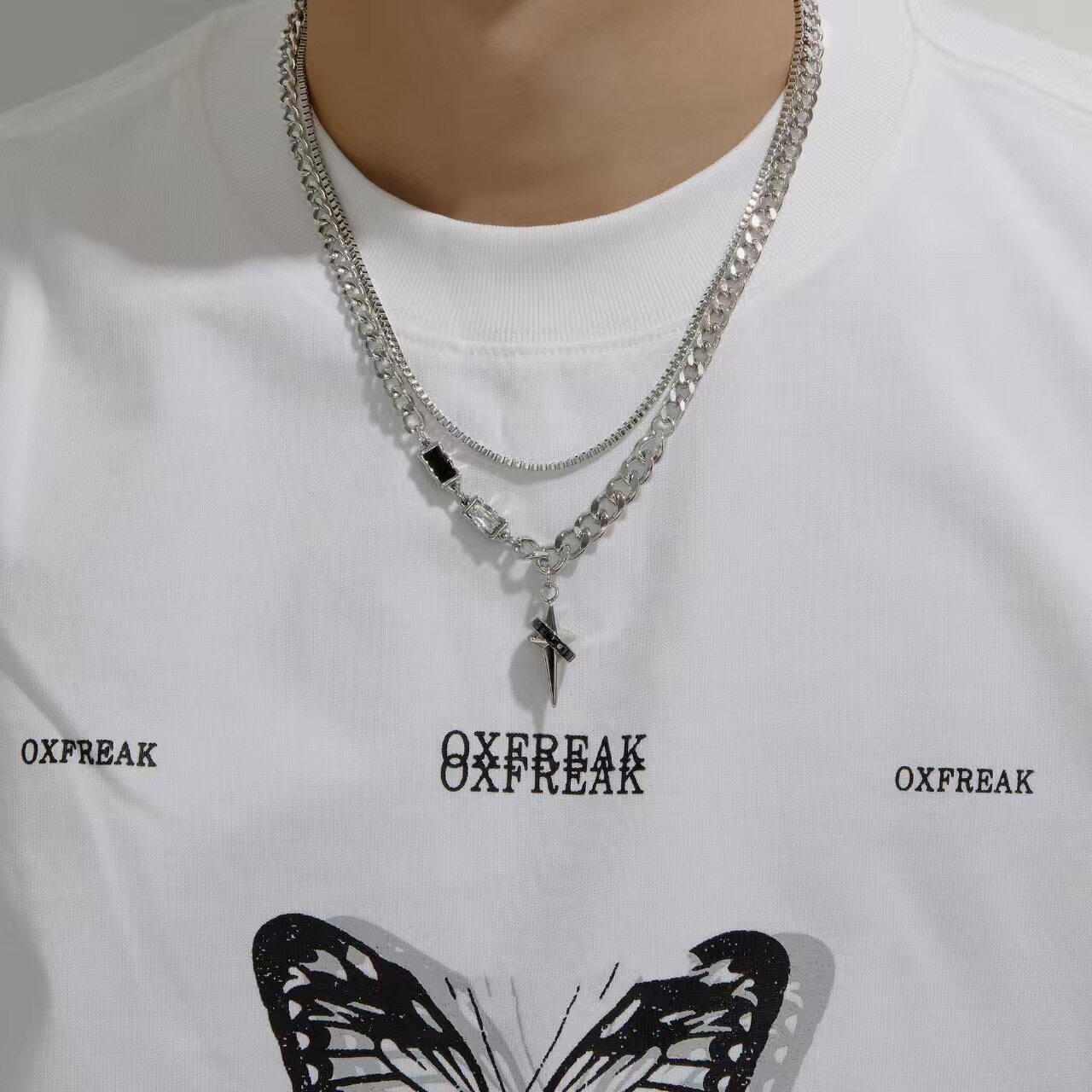 NG环绕芒星十字架吊坠叠戴钛钢项链男士小众设计高级感锁骨链女款