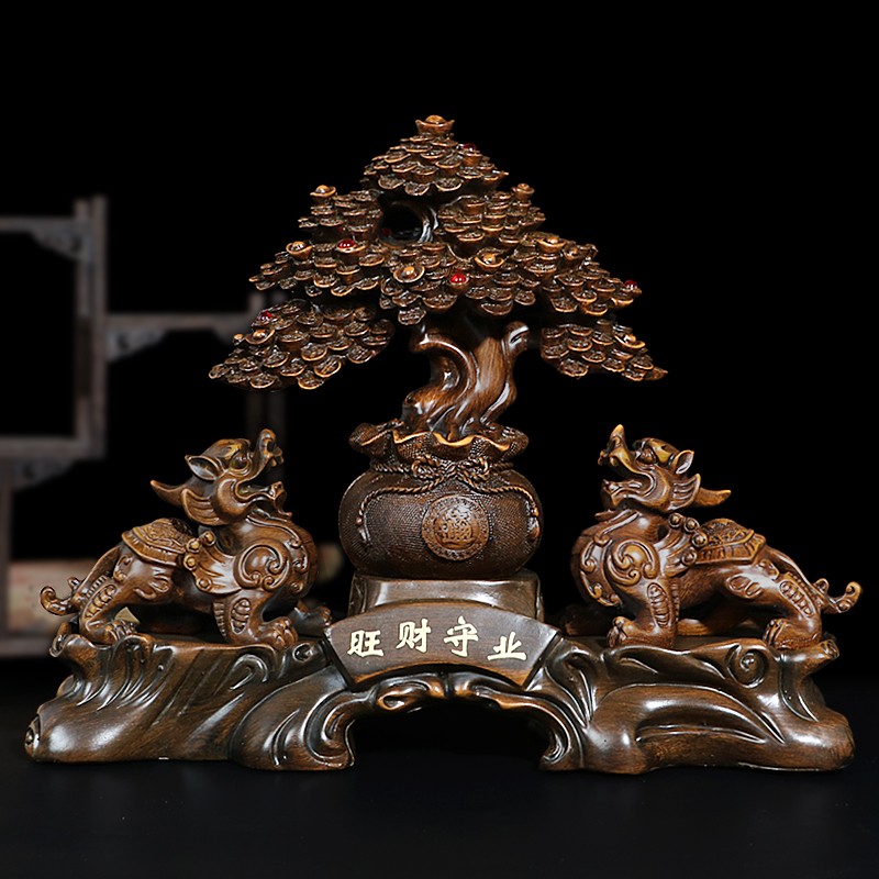 金蟾招财摆件貔貅发财q树麒麟摇钱树工艺品玄关客厅办公室开业礼