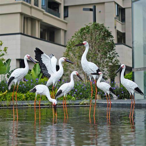 仿真仙鹤雕塑白鹤摆件玻璃钢水池户外鸟装饰园林小区白鹭景观模型