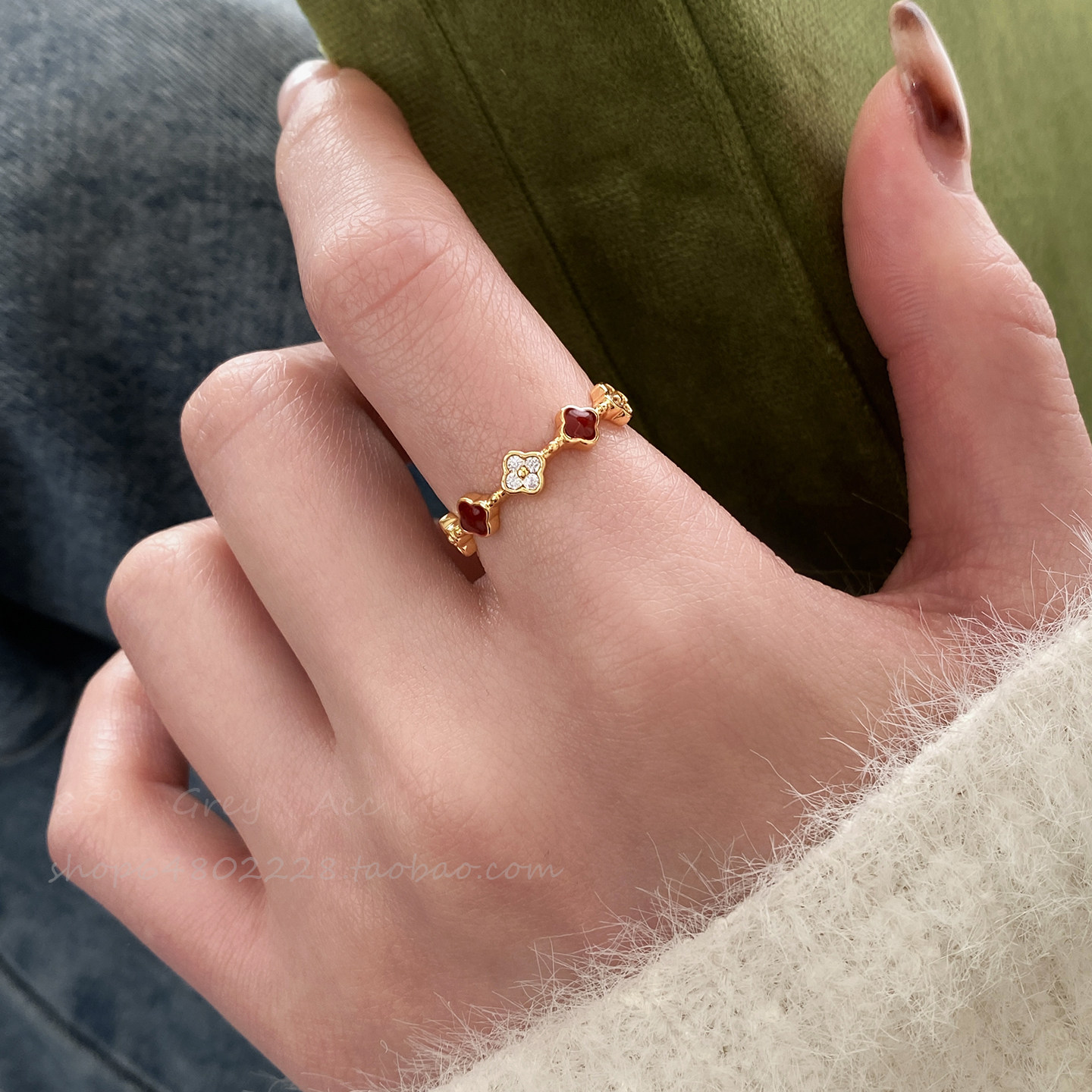 新中式红色滴釉开口戒指女小众设计叠戴食指戒超好看独特漂亮指环