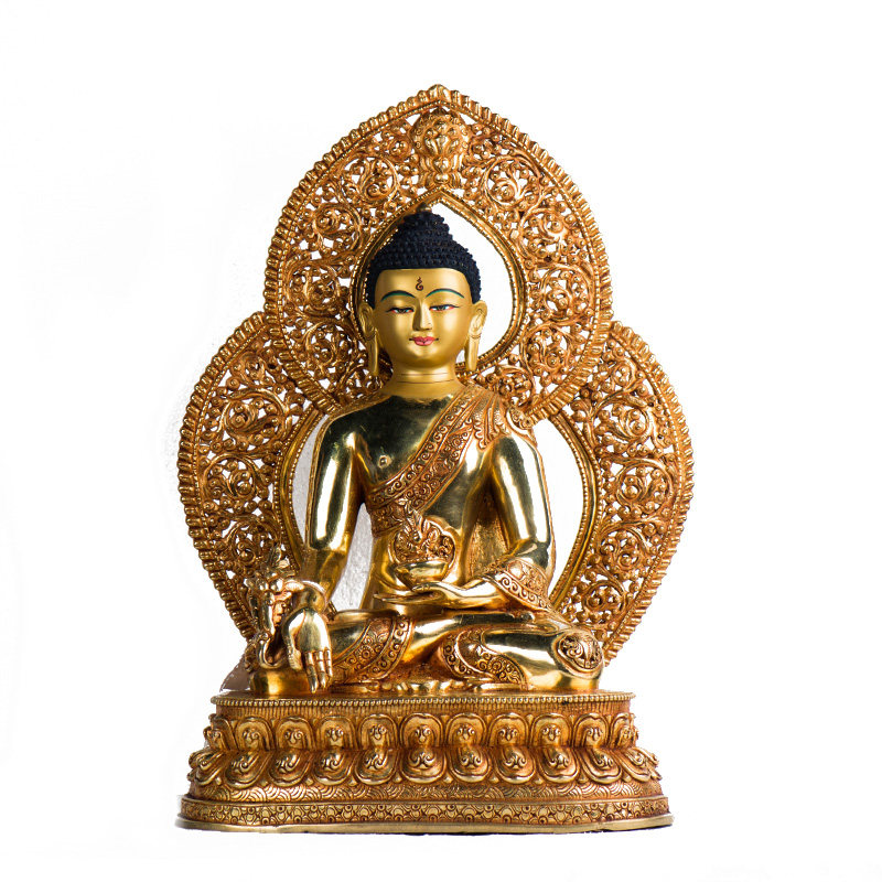 欧斯特 药师佛铜像 家居客厅用品玄关摆件尼泊尔铜全鎏金铜像10寸