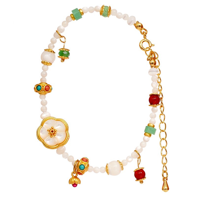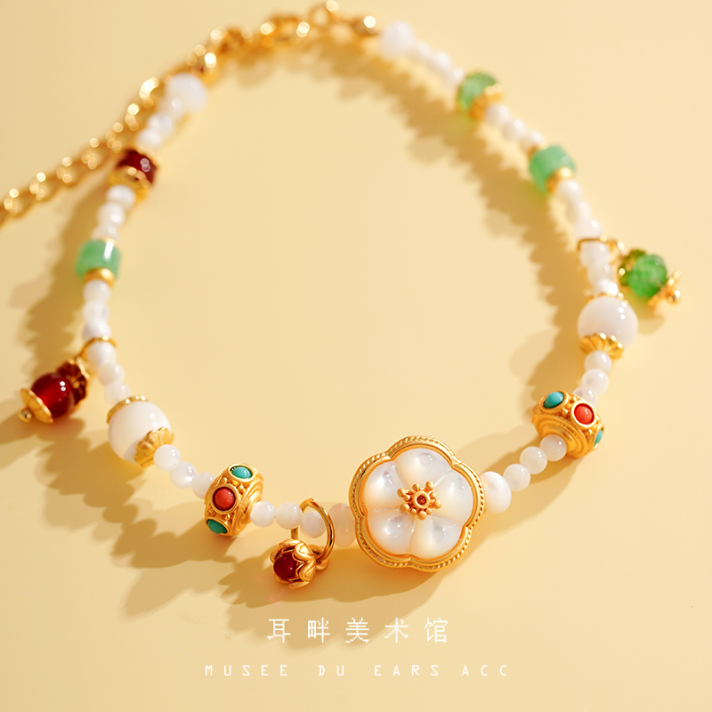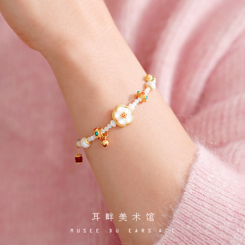 A天然母贝白色梅花手链女新中式过年轻奢小众精致手链女生学生党