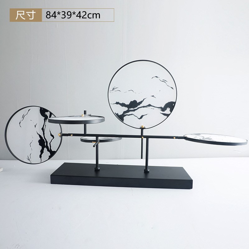 现代新中式禅意铁艺亚克力抽象画摆件会所样板房客厅玄软关装饰品