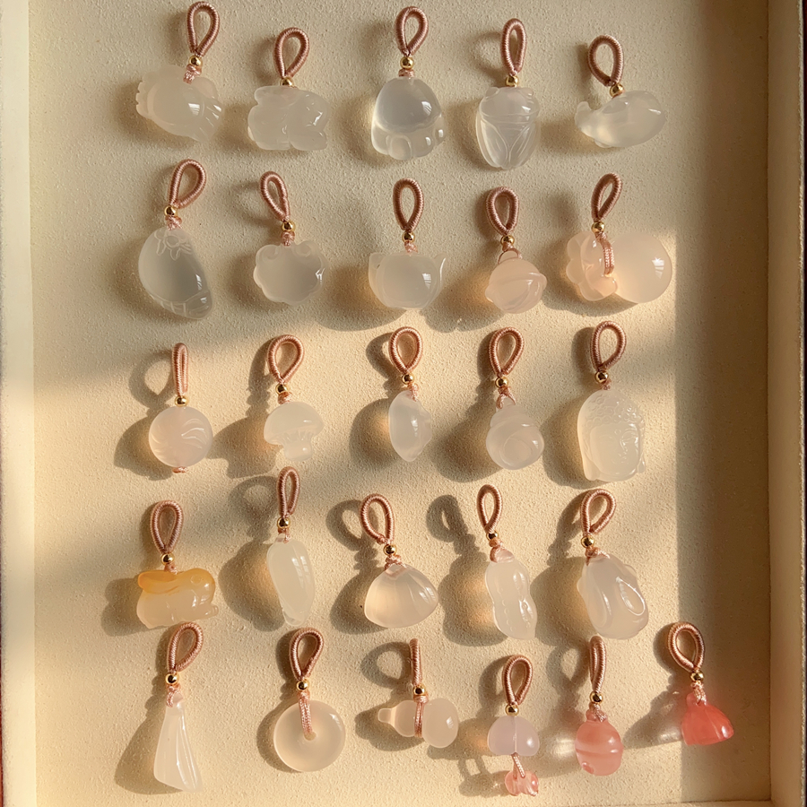 {多宝}玉髓多宝卡通小吊坠 猫爪小兔子宝宝锁如意小提溜半成品