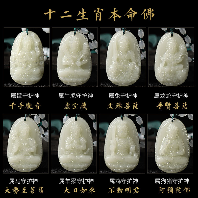 天然和田玉十二生肖本命佛吊坠和田玉八大守护神水晶牛项链情侣款