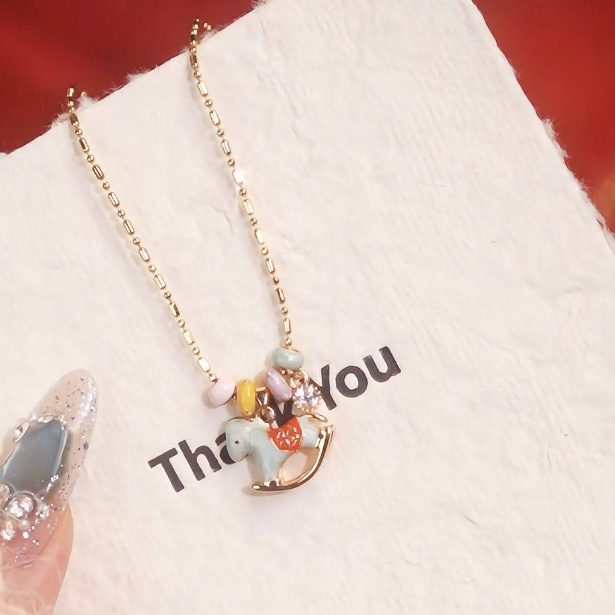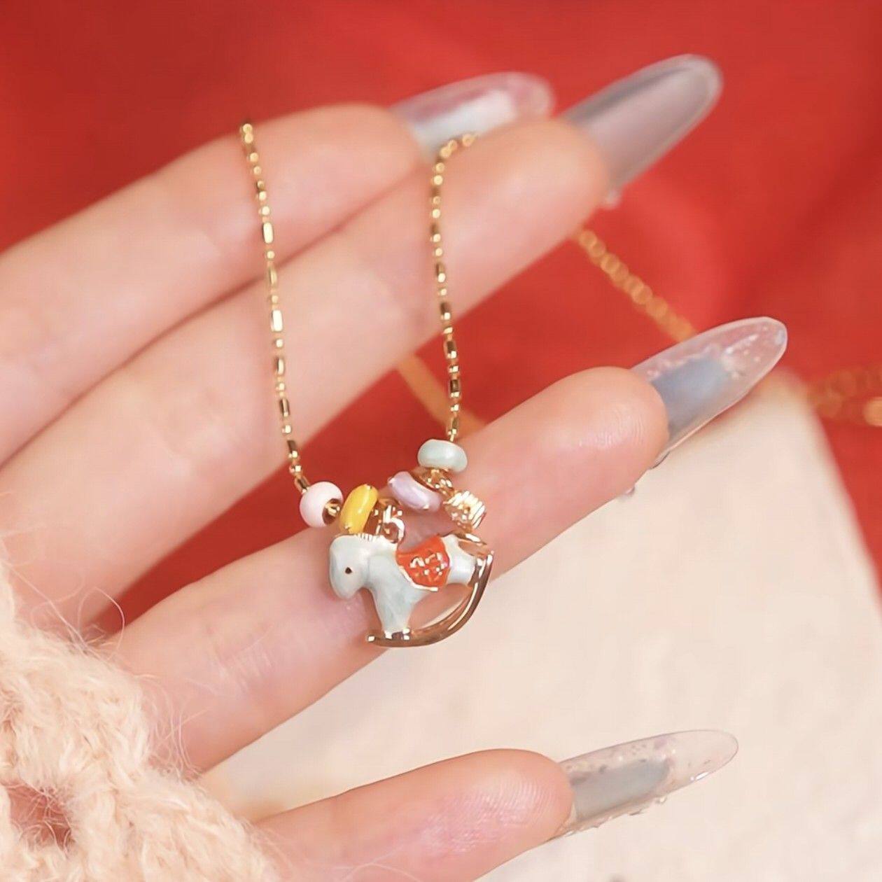 马上有福~旋转木马跑环吊坠项链珐琅少女心锁骨链ins多巴胺毛衣链