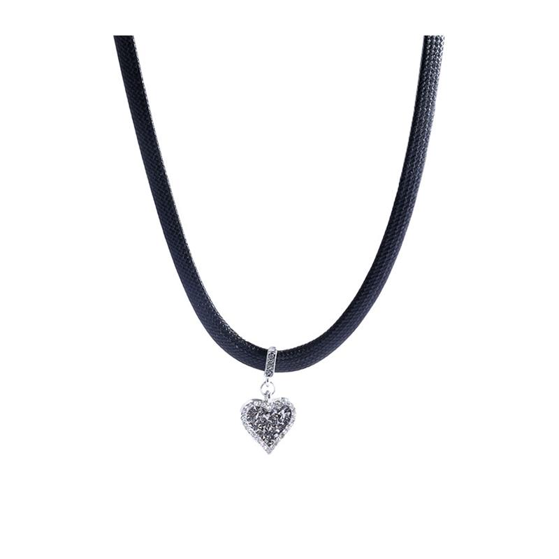 暗黑系~黑色镶皮绳爱心项链女轻奢小众设计感锁骨链网红同款颈链