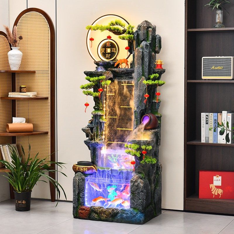 客厅流水生财鱼缸摆件古法缸水循环办公J室水系景观生态缸假山喷