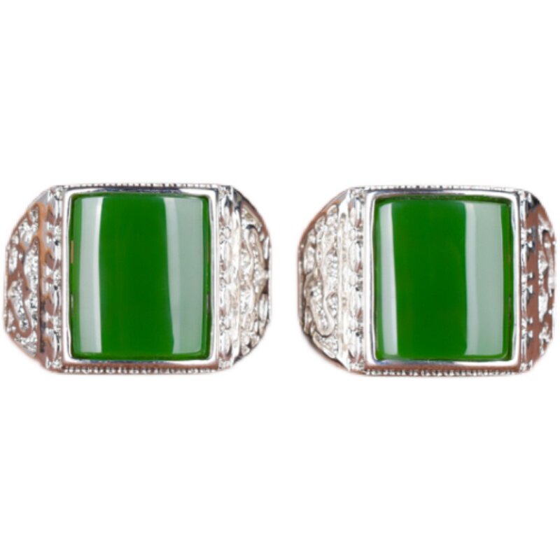 新款新疆和田玉碧玉戒指925银镶嵌马鞍戒面男款活口戒指指环