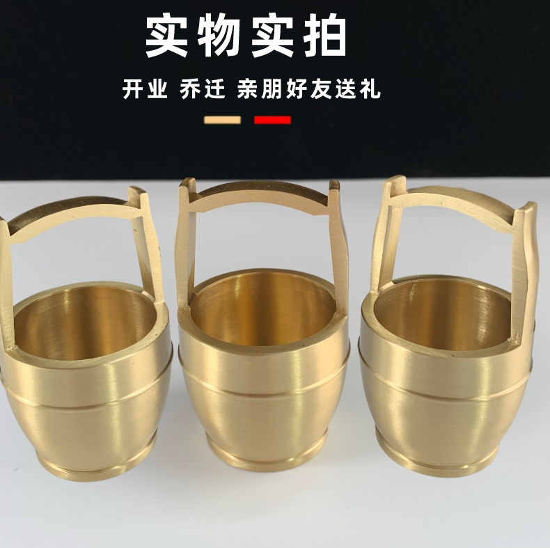 一桶金全铜小水桶摆件招财办公室桌面商务礼品家居装饰品送五帝币