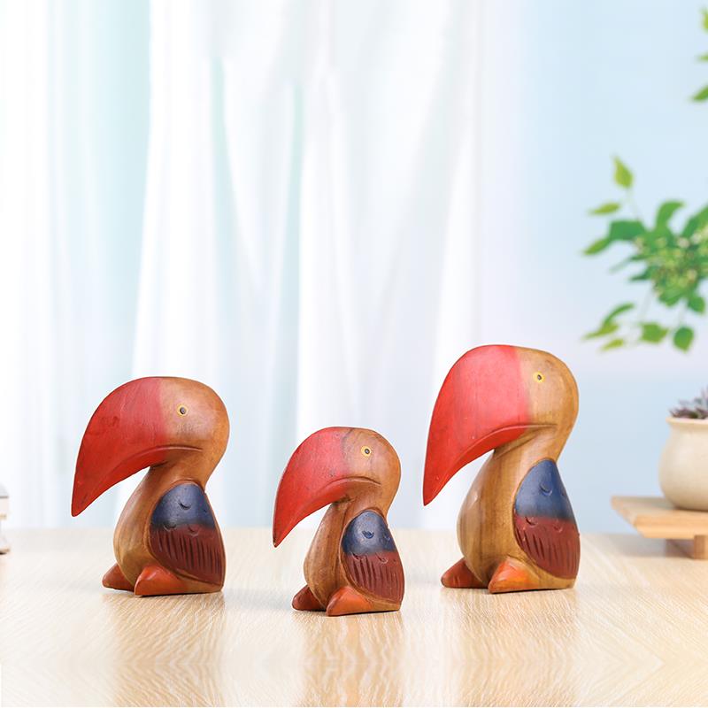 泰国木雕工艺品东南亚风格手工雕刻犀小鸟摆件书架办公室桌面装饰