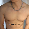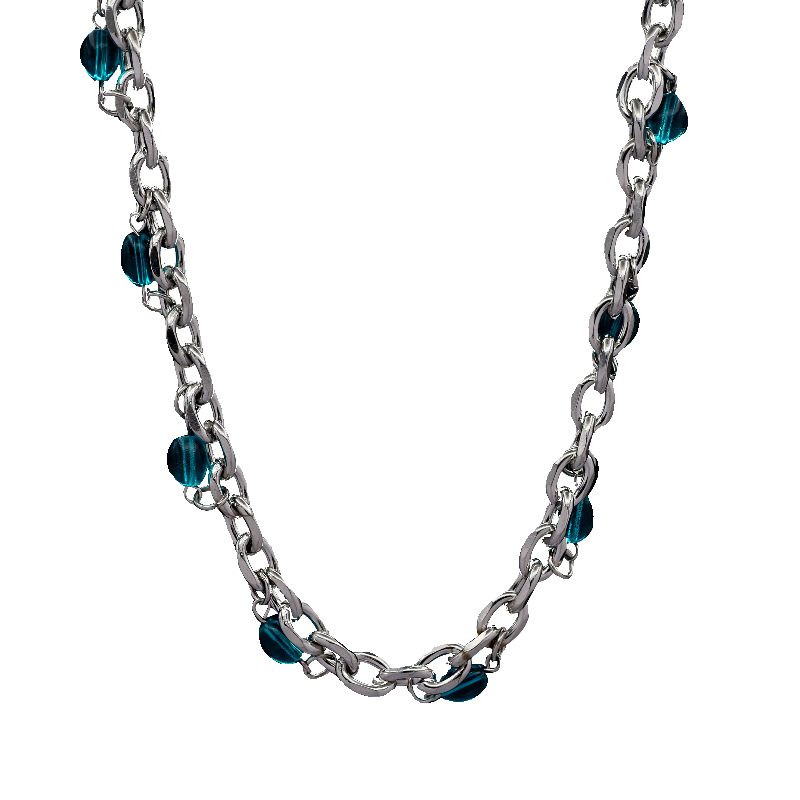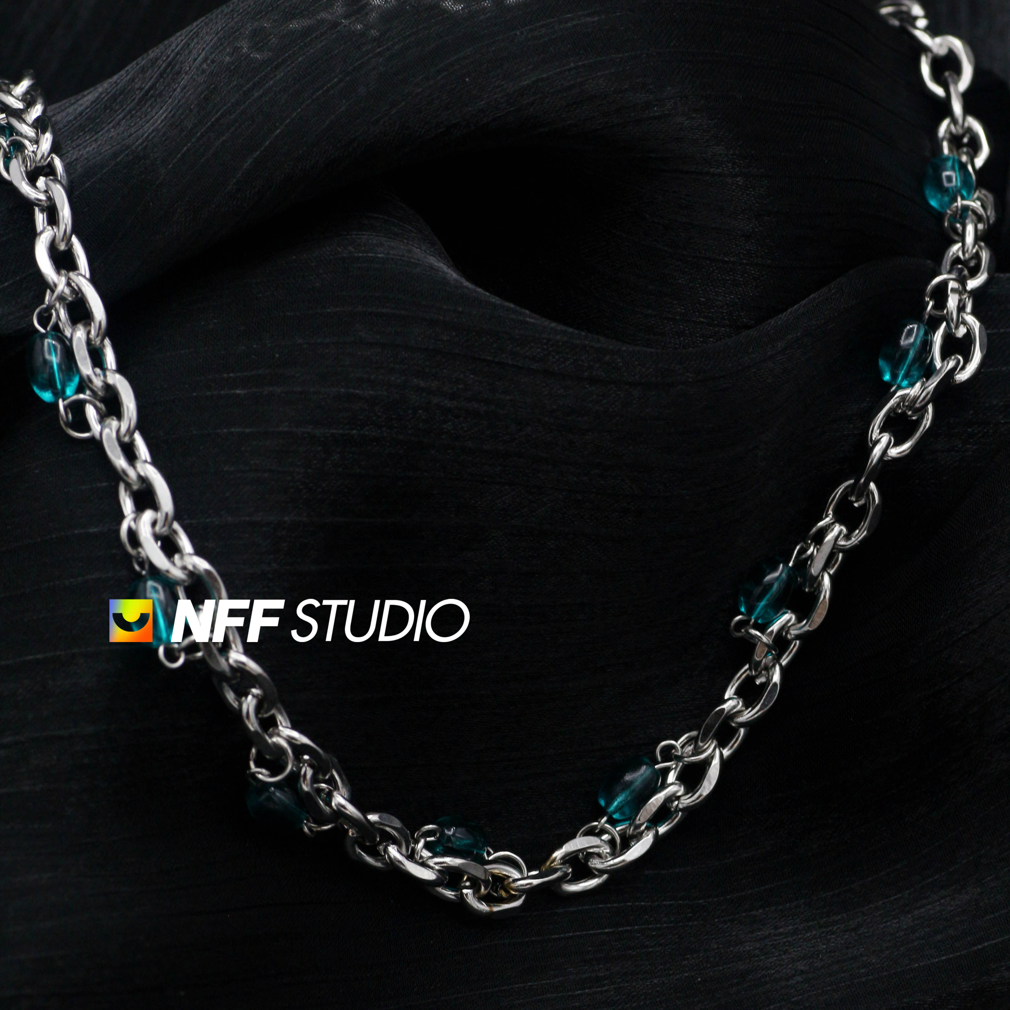 NFF绿色珠串联钛钢项链个性潮流锁骨链男女小众百搭设计感毛衣链