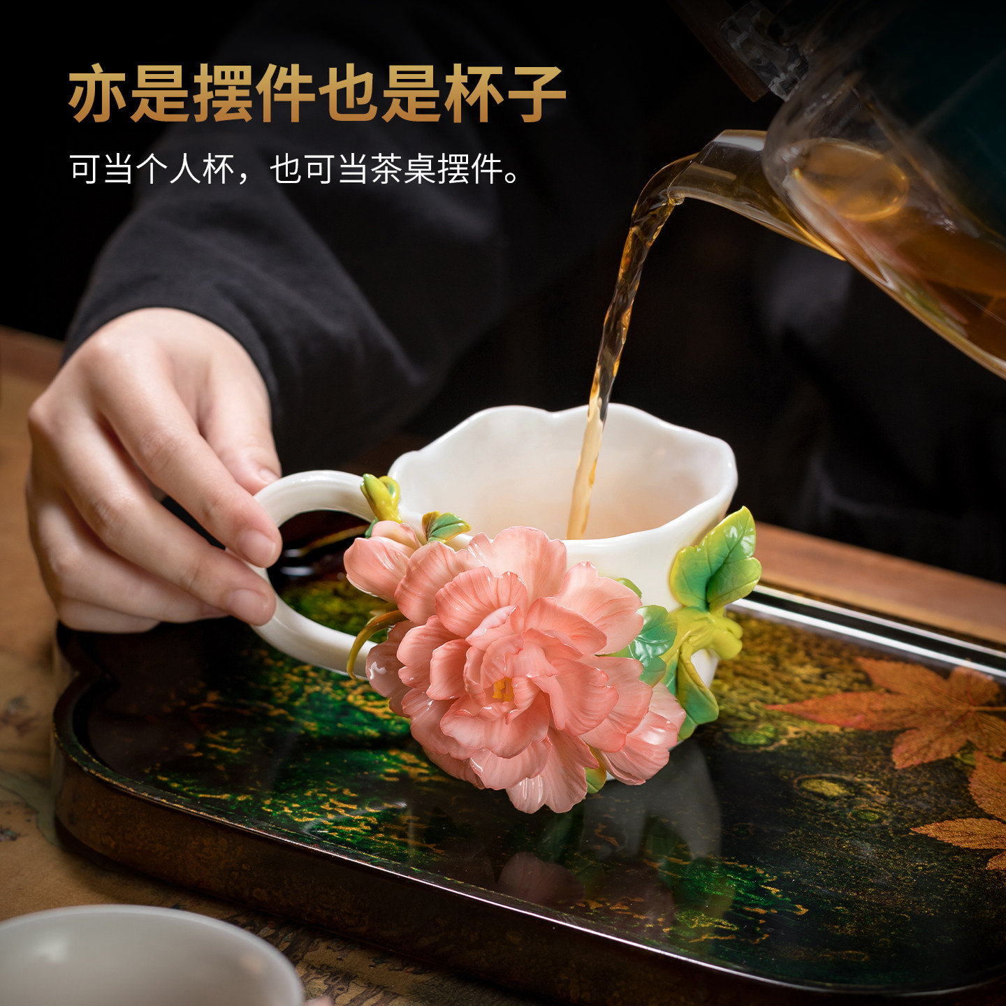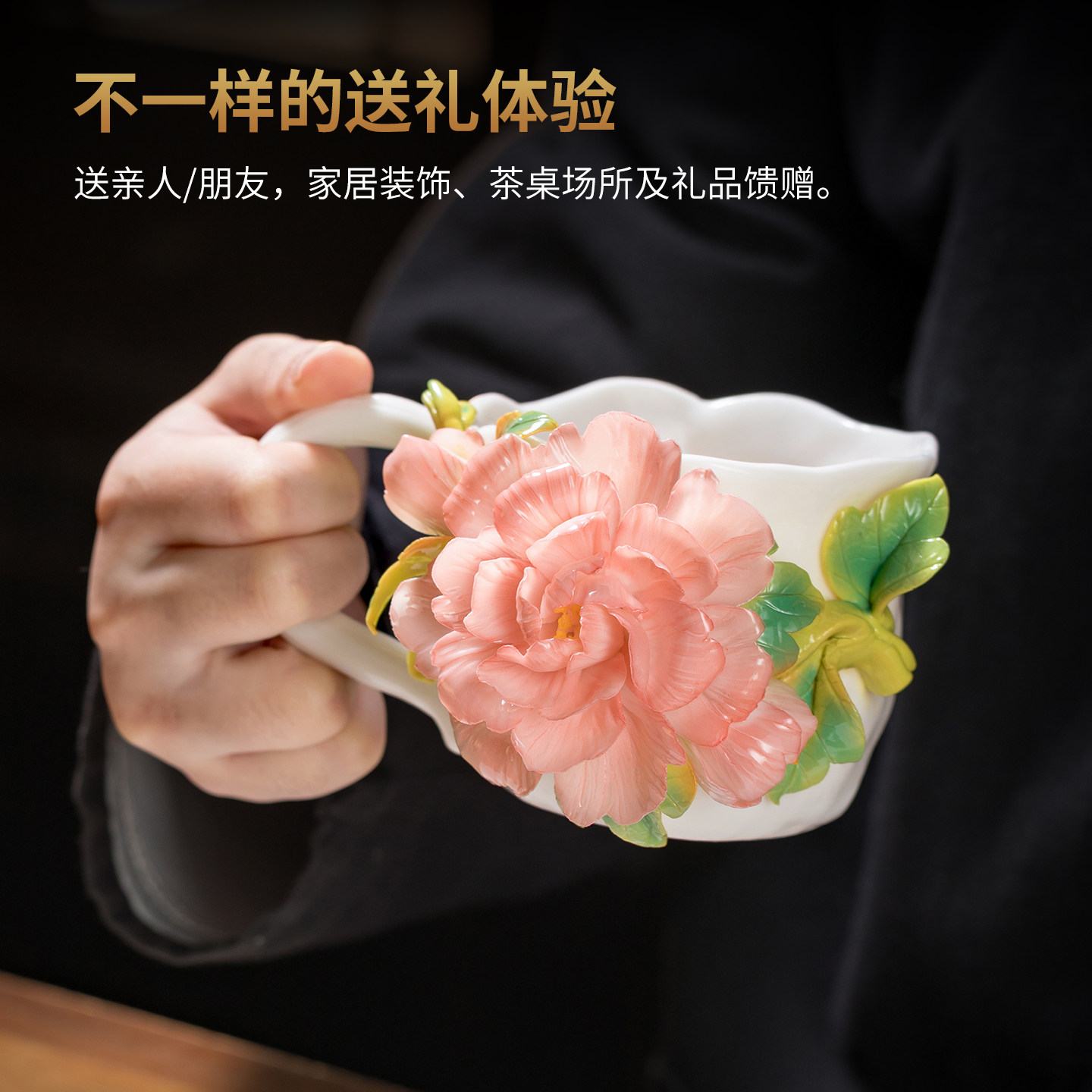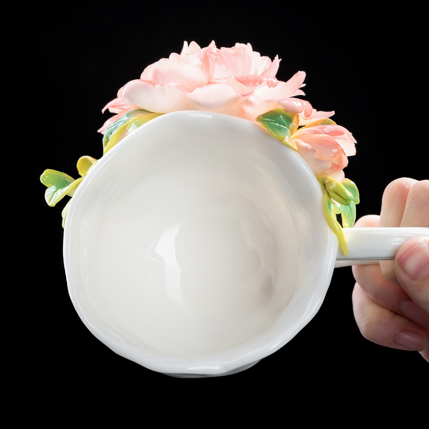 陶瓷非遗手工芍药瓷花咖啡杯子有意义生日送朋友闺蜜同事高级礼物