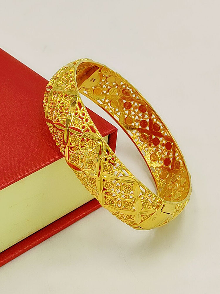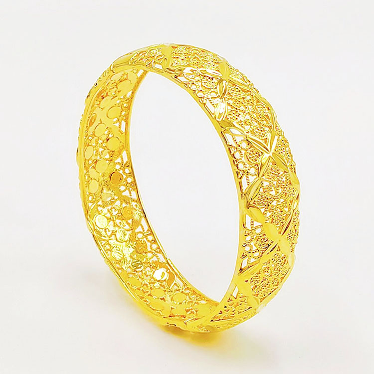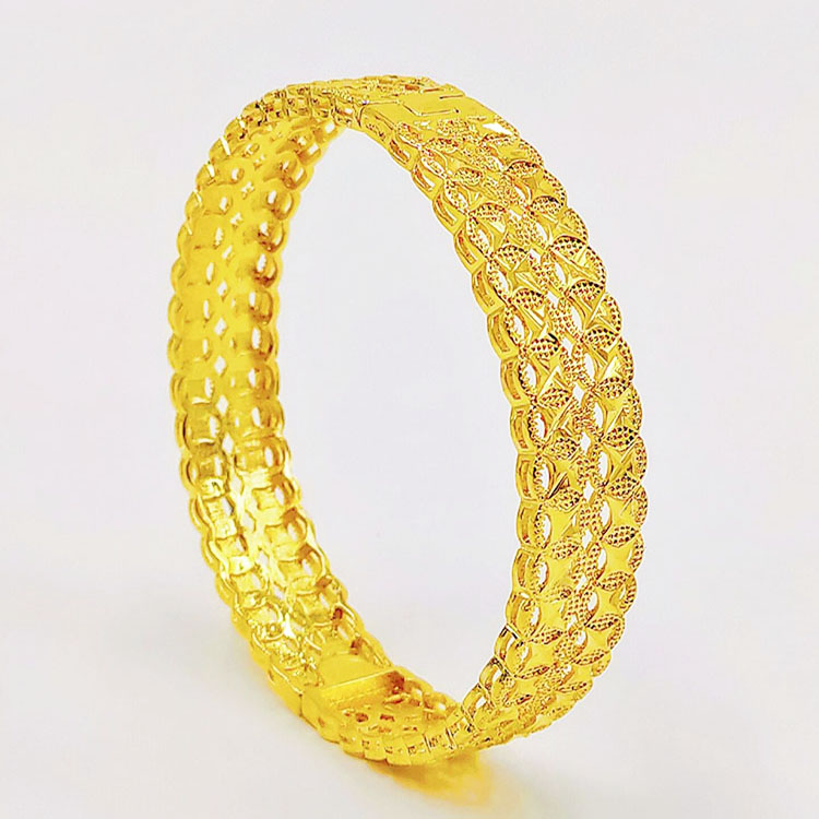 越南沙金镂空手镯女士新款24k镀金卡扣宽面新娘镯子仿真久不掉色