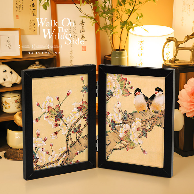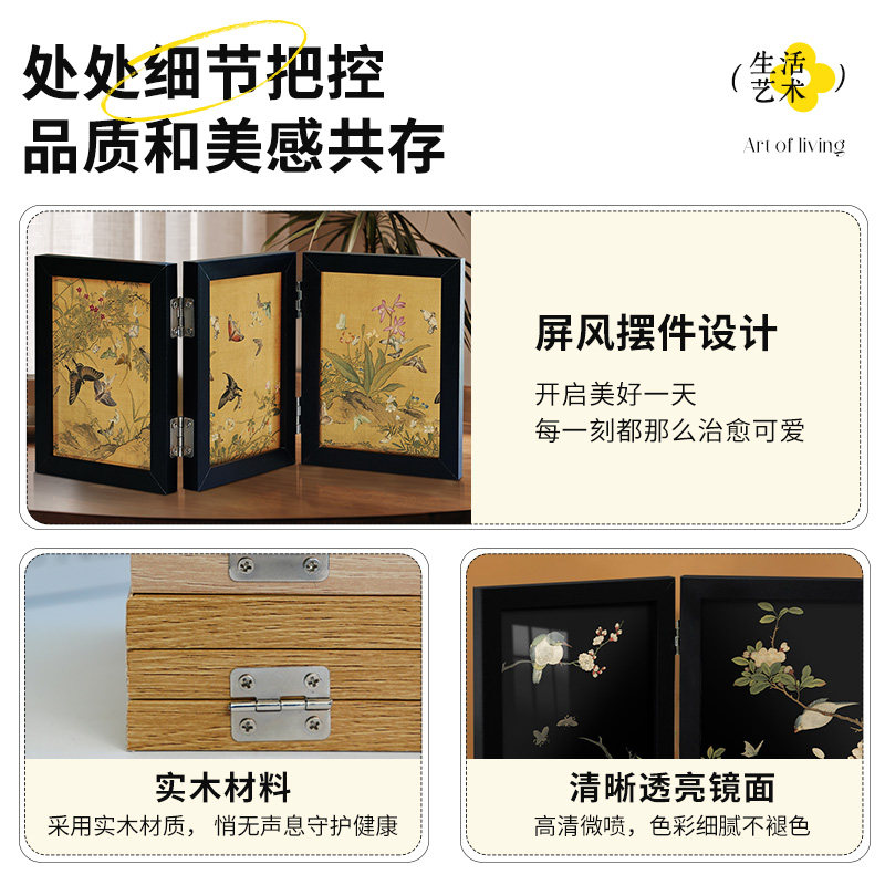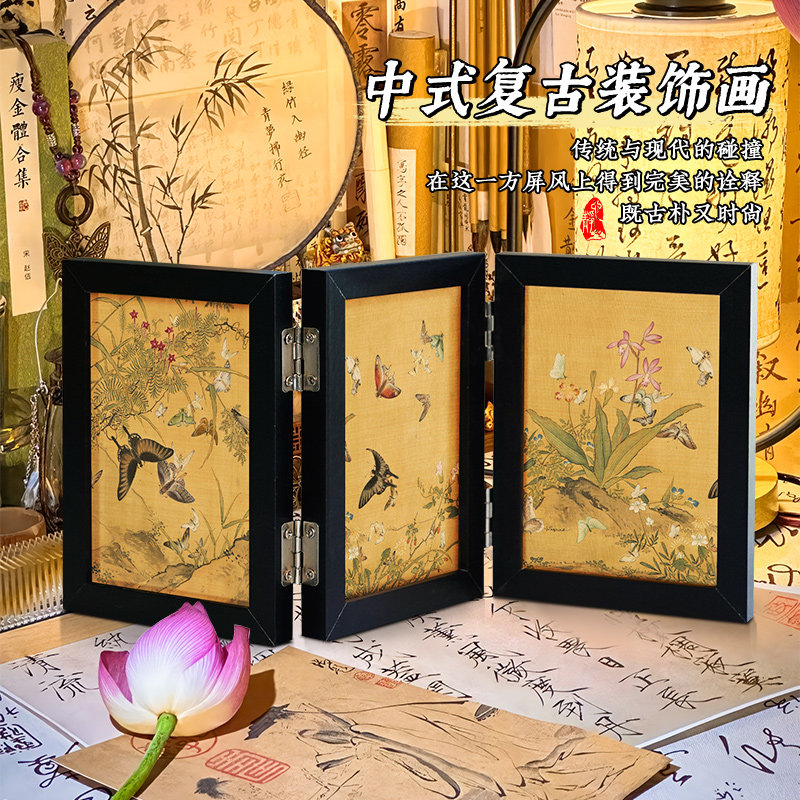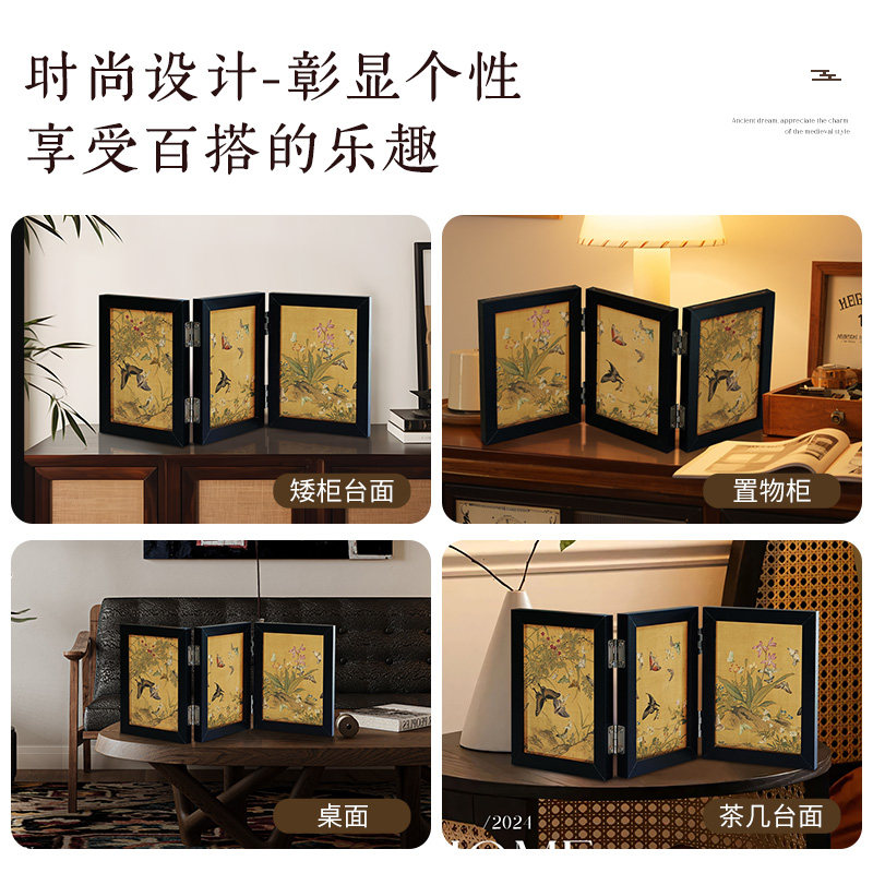 桌面中古风屏风摆件装饰画新中式办公室桌卧室餐厅艺术摆台高级感
