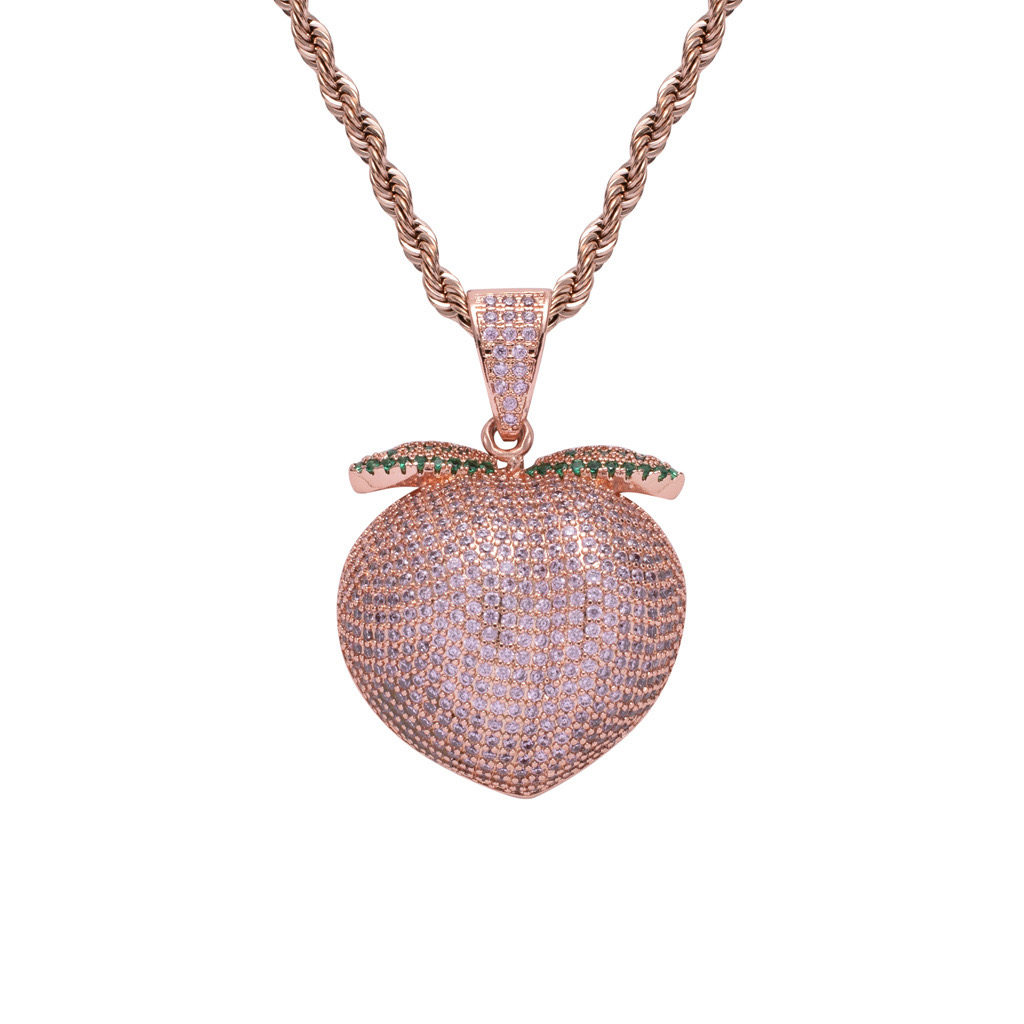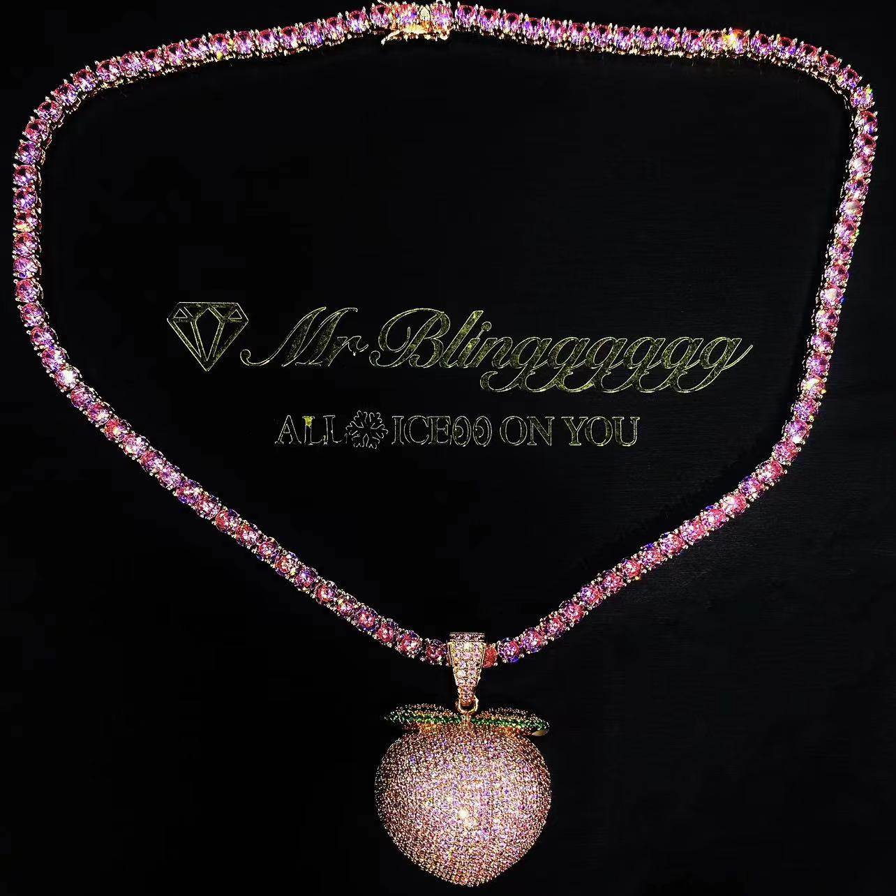 Mr.Blingggggg欧美嘻哈珠宝 情侣款满钻玫瑰金粉钻蜜桃潮流吊坠
