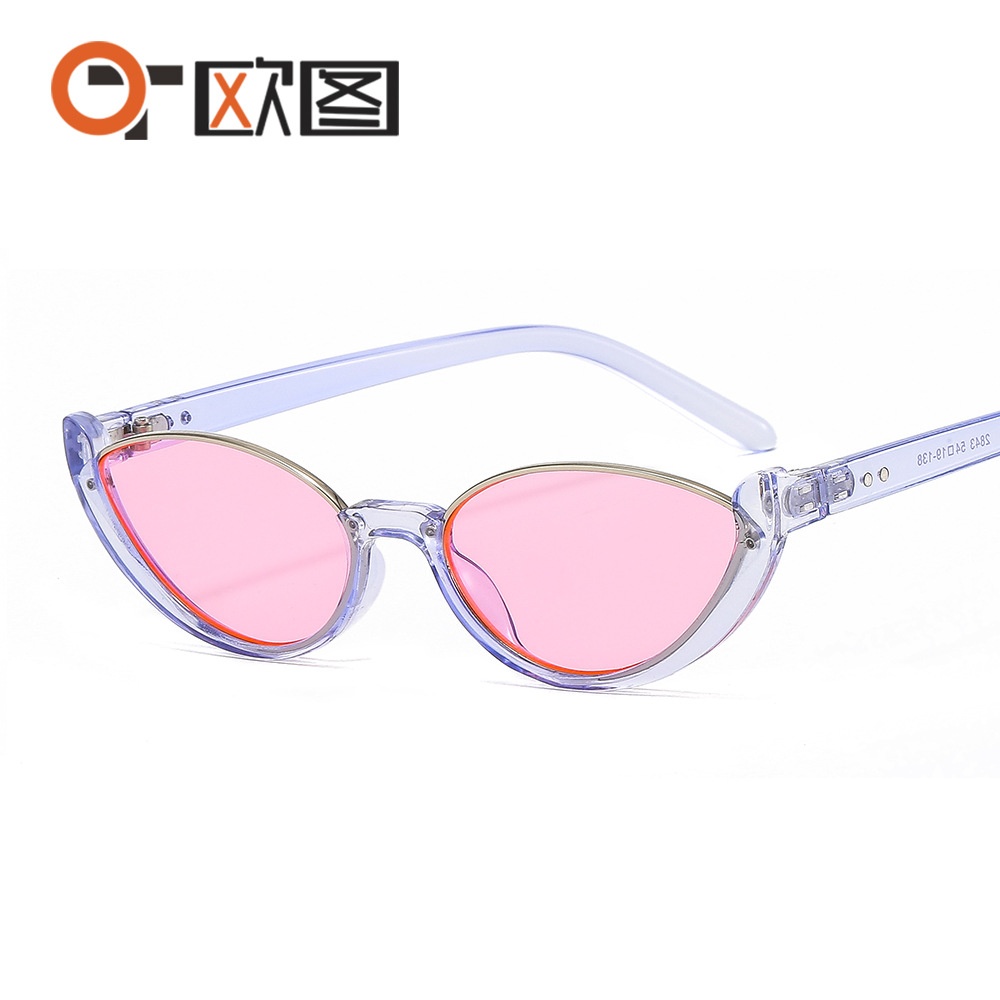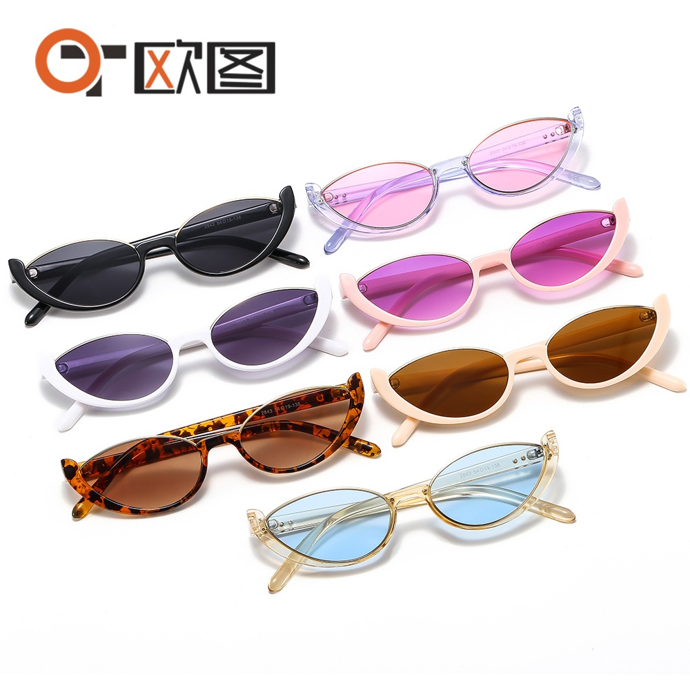 欧图新款猫眼睛女士太阳镜 小框椭圆彩色ins个性跨境墨镜2843