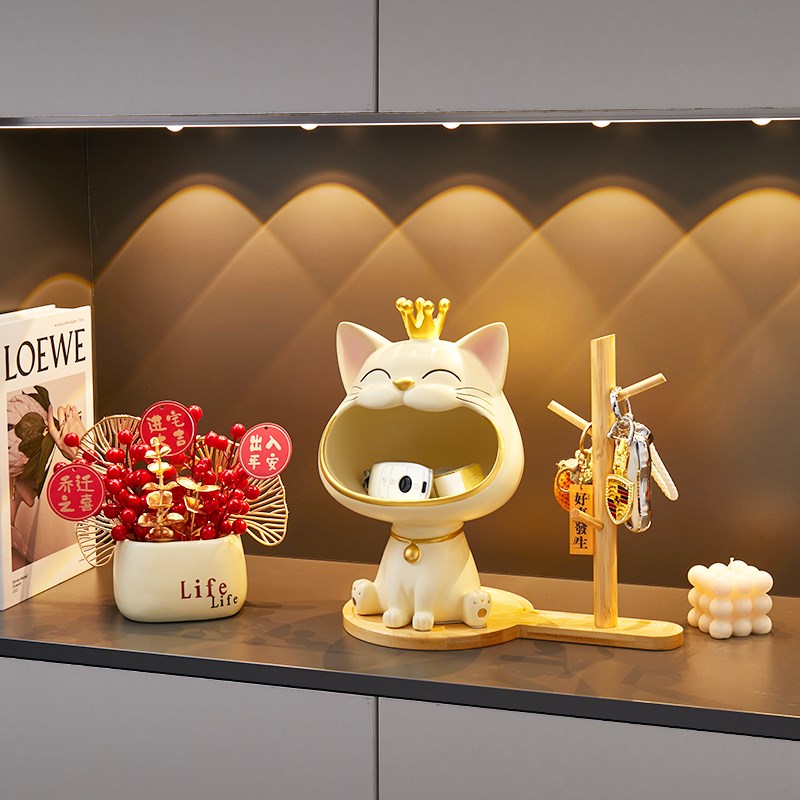 招财猫钥匙收纳摆件玄关鞋柜装饰品入户进门口置物V架乔迁新居礼