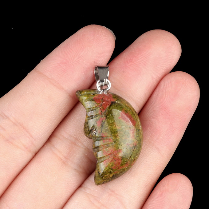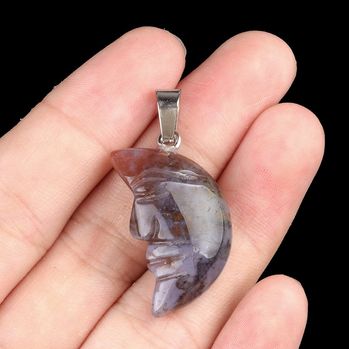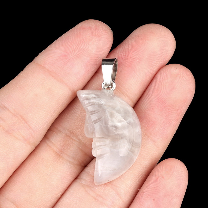 【茜茜珠饰】雕刻人脸月亮吊坠diy水晶月亮脸项链饰品配件 27色