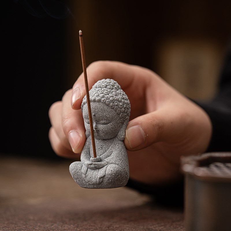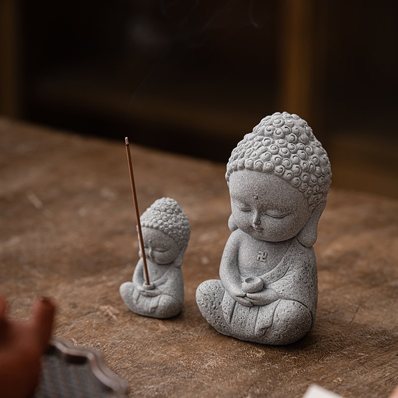 新创意青砂石释迦摩尼佛像茶宠小摆件复古佛鱼缸造景盆栽桌面装饰