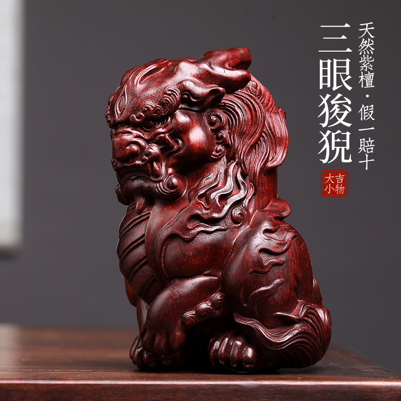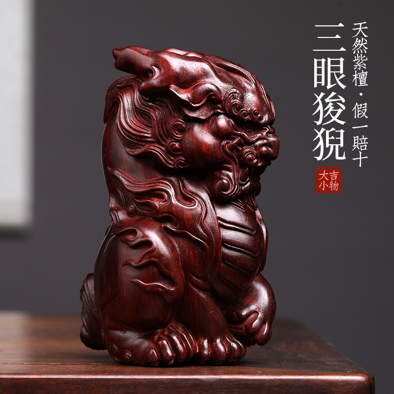 天然紫檀木雕三眼狻猊创意文玩手把件生肖龙饰品桌面工艺品摆件