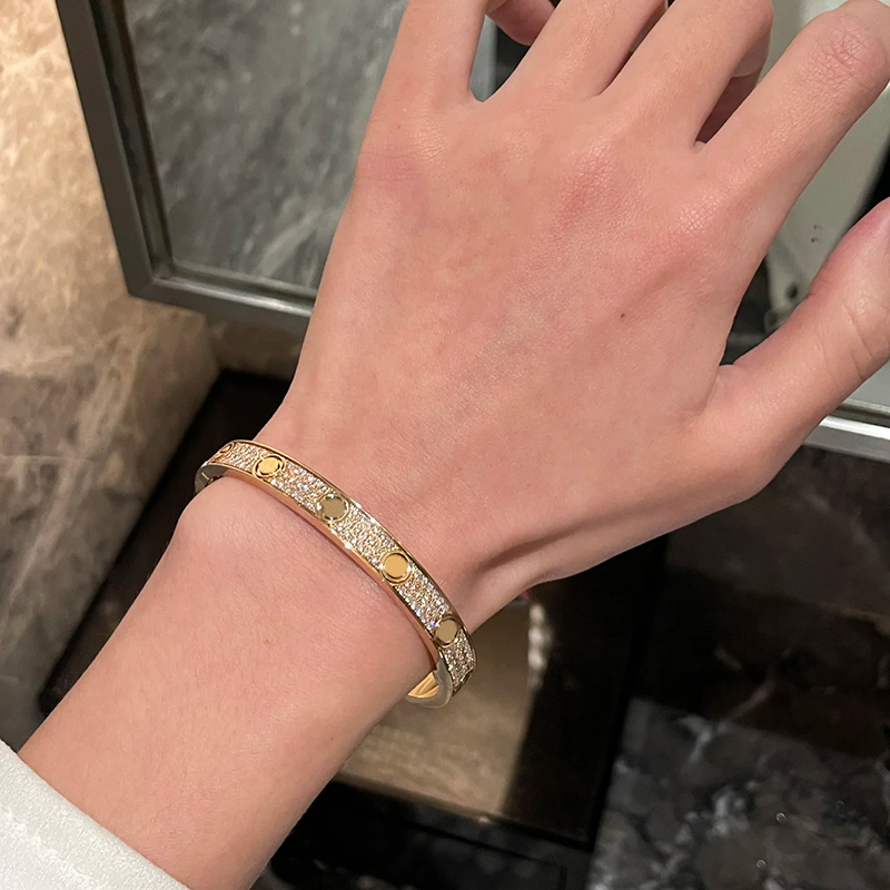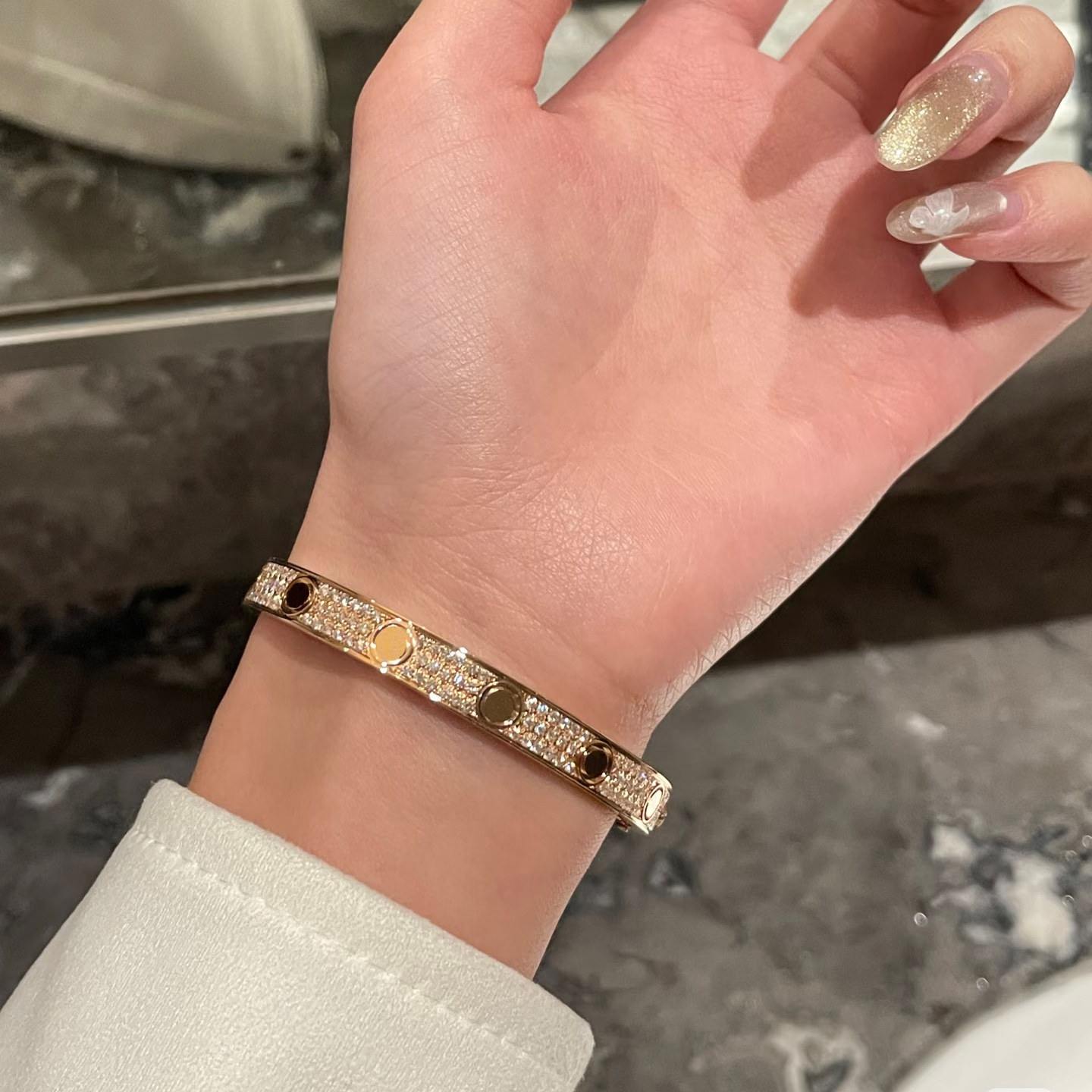 轻奢满天星手镯男女款18 k玫瑰金情侣款宽窄版满钻手环情人节礼物