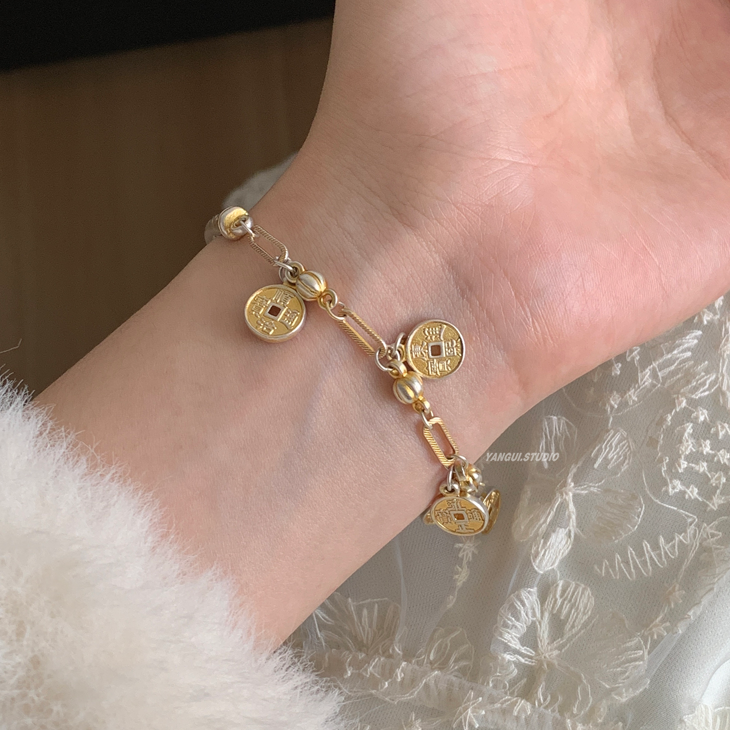 Yangui燕归「半福圆币」国风新中式足银999.9钱币轻奢小众手镯女