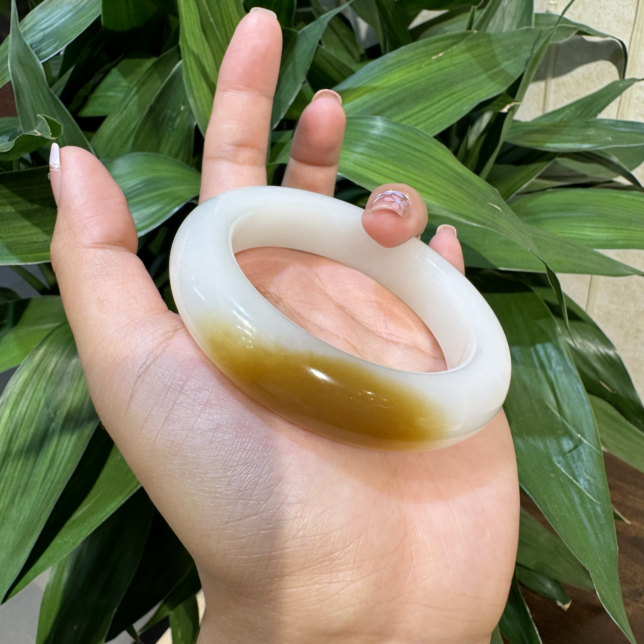 新疆和田玉且末料糖白手镯女款玉石镯子胖泥鳅