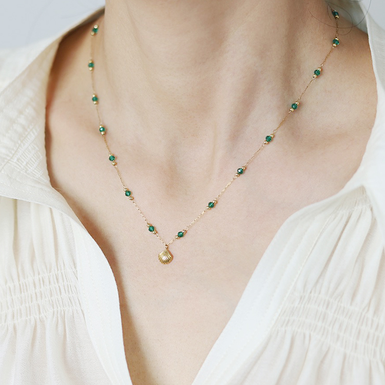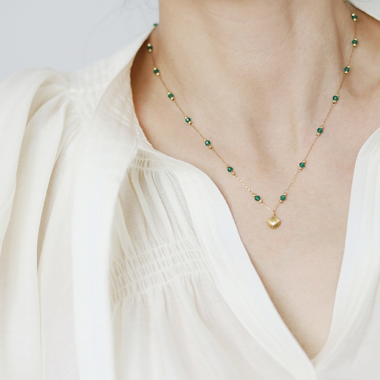 不褪色洗澡不用取新中式祖母绿串珠颈链轻奢小众设计锁骨链气质链