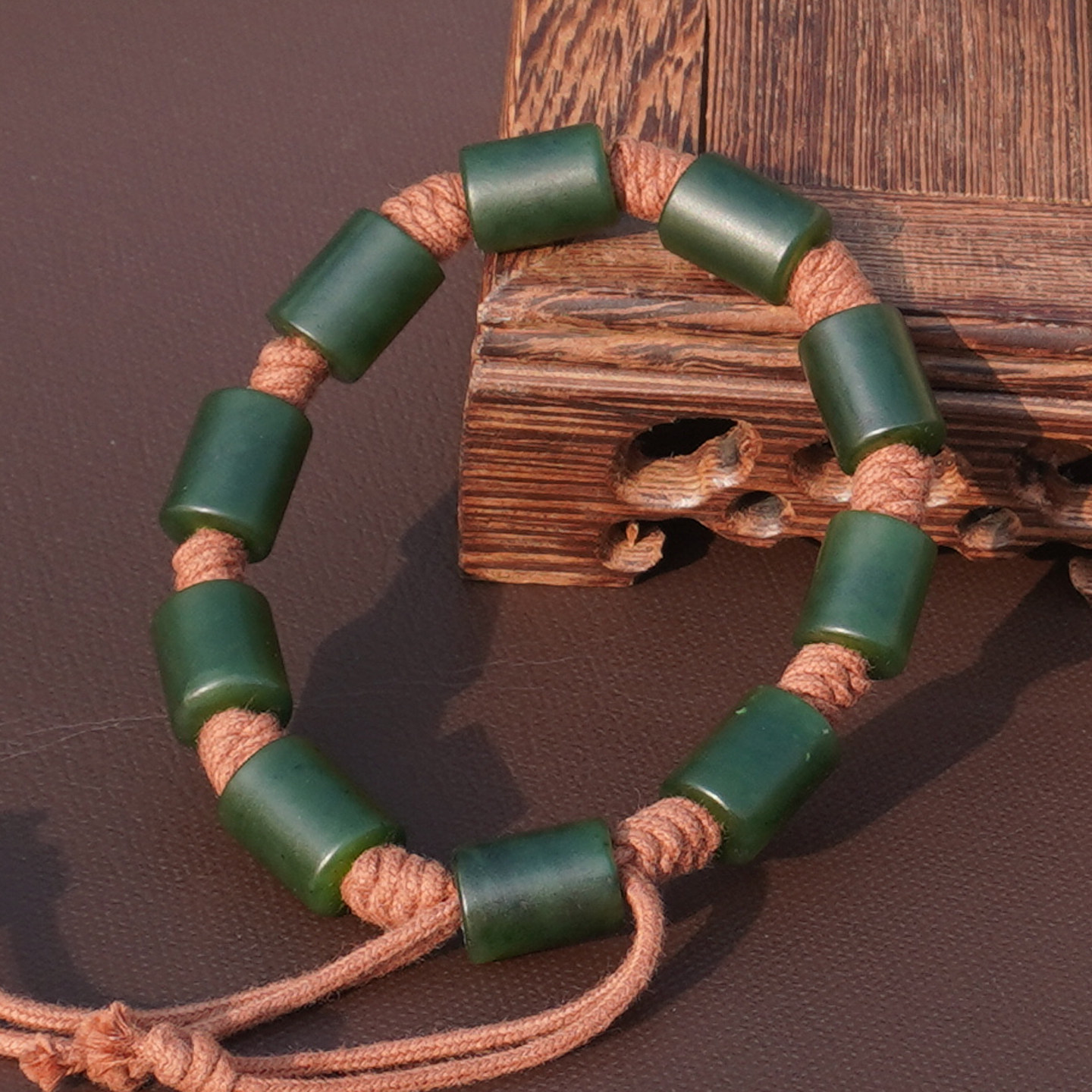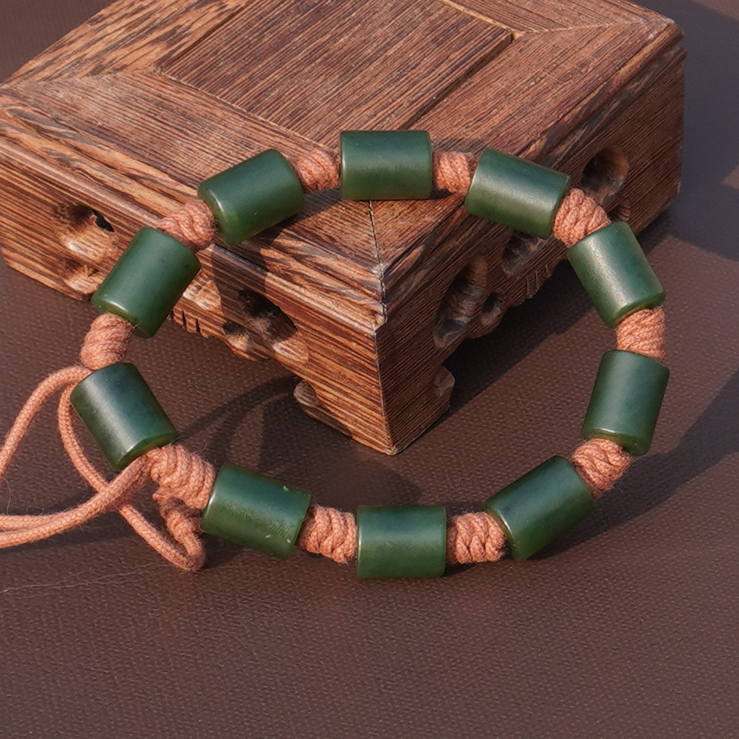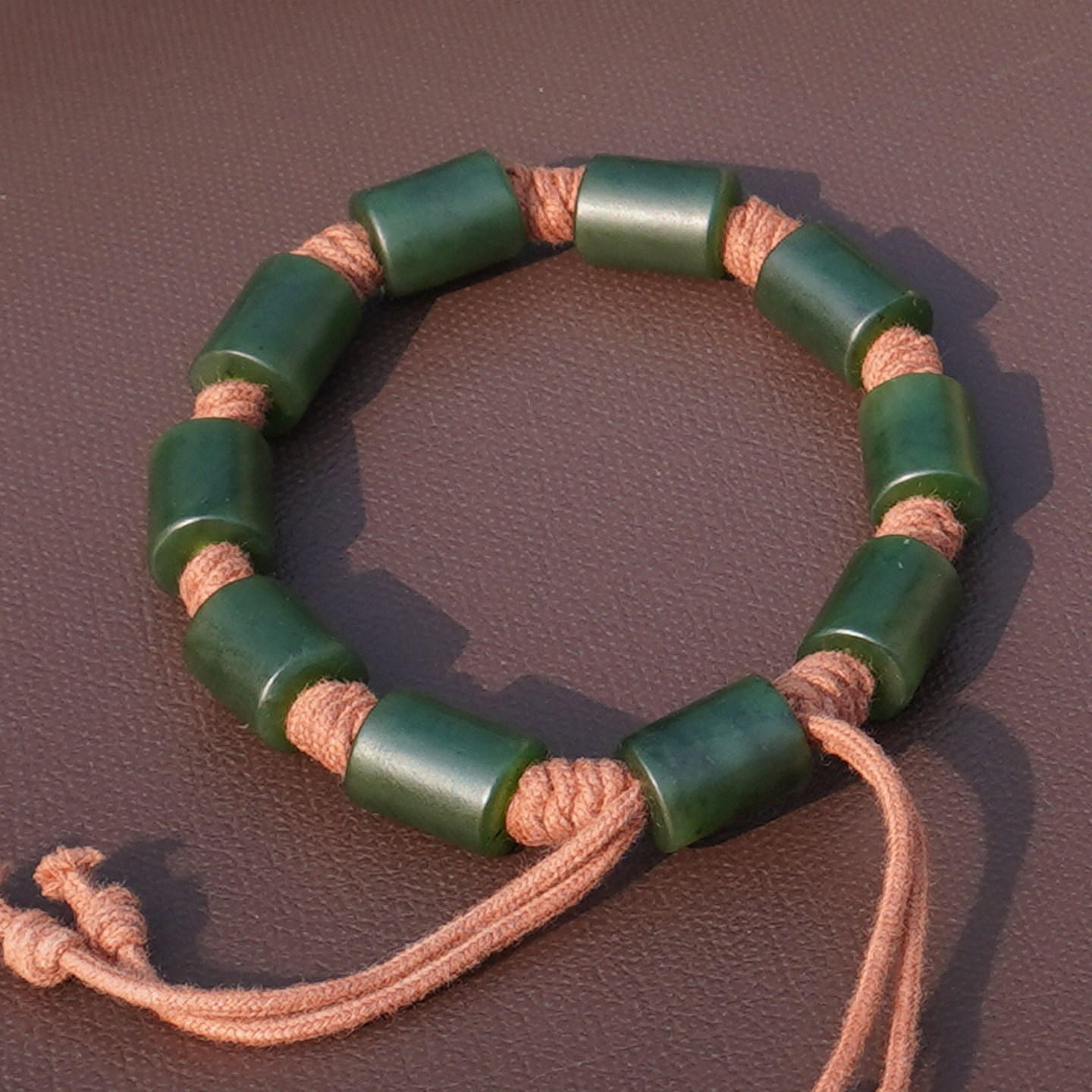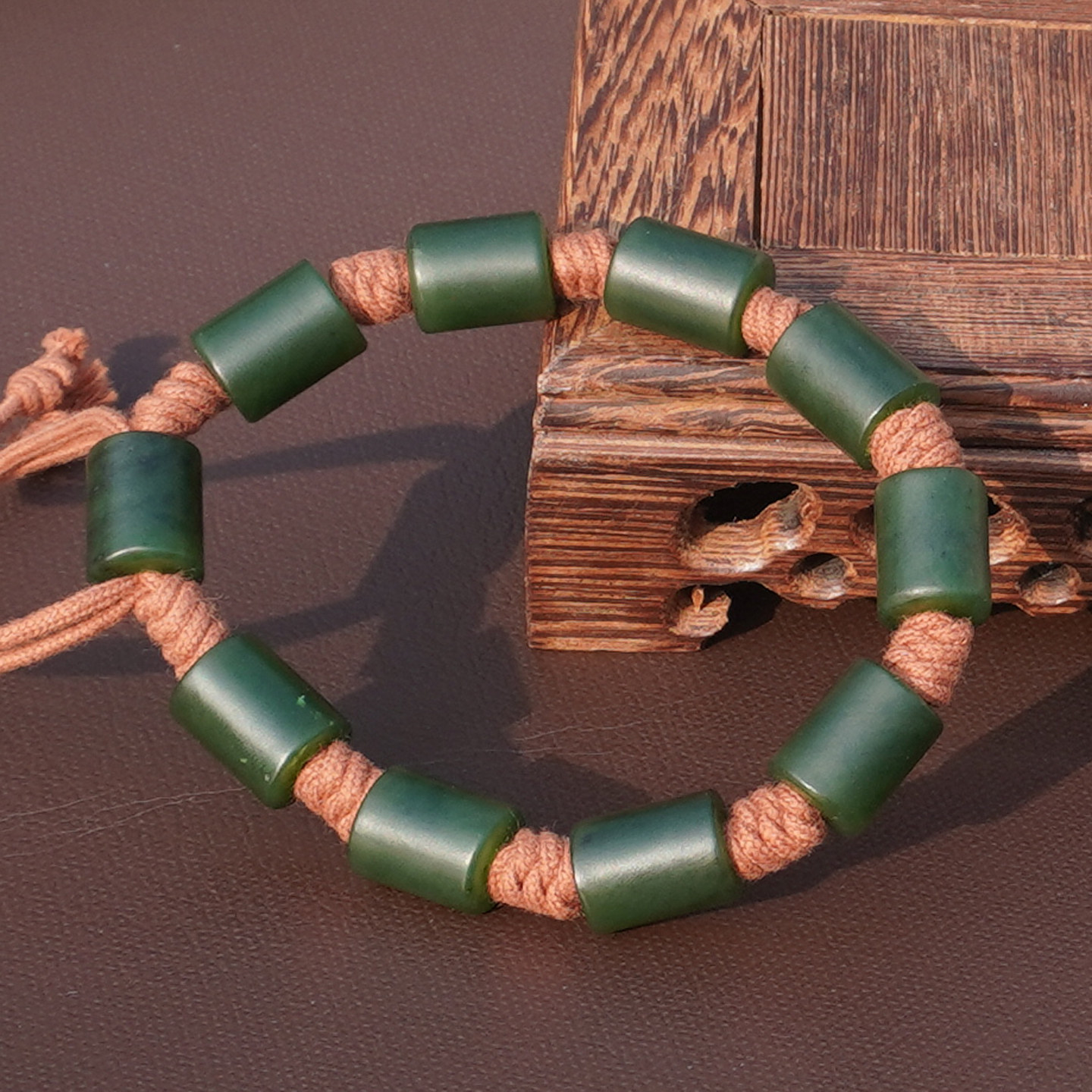 方言和田玉新疆色标浓郁菠菜绿碧玉籽料10.5mm手工编织男女手链A6