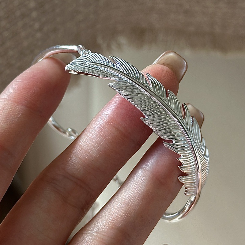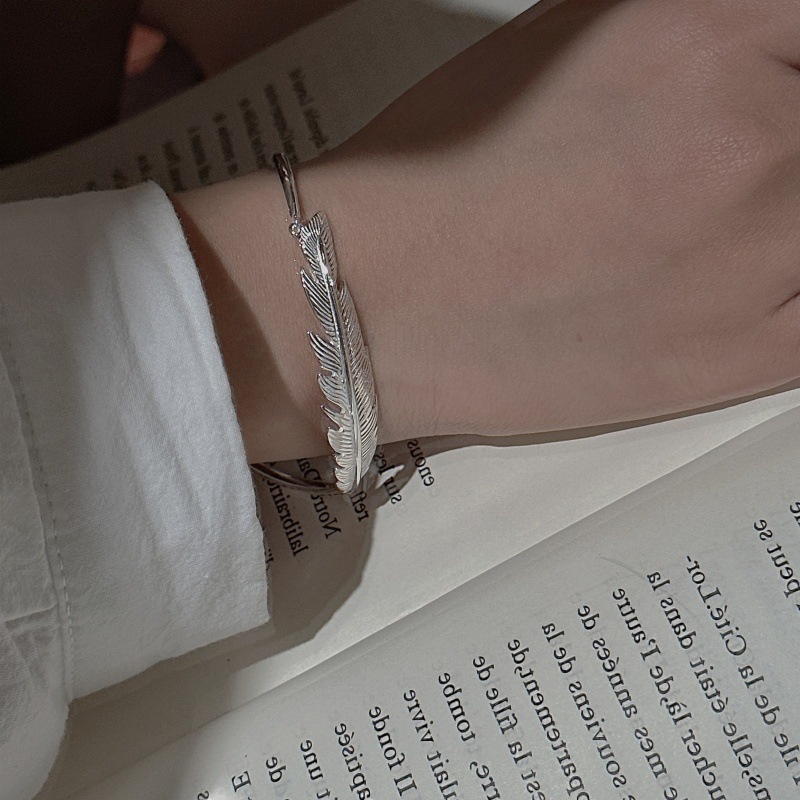 S925纯银韩版小众设计感复古重工羽毛手环韩式风简约时髦感手镯女