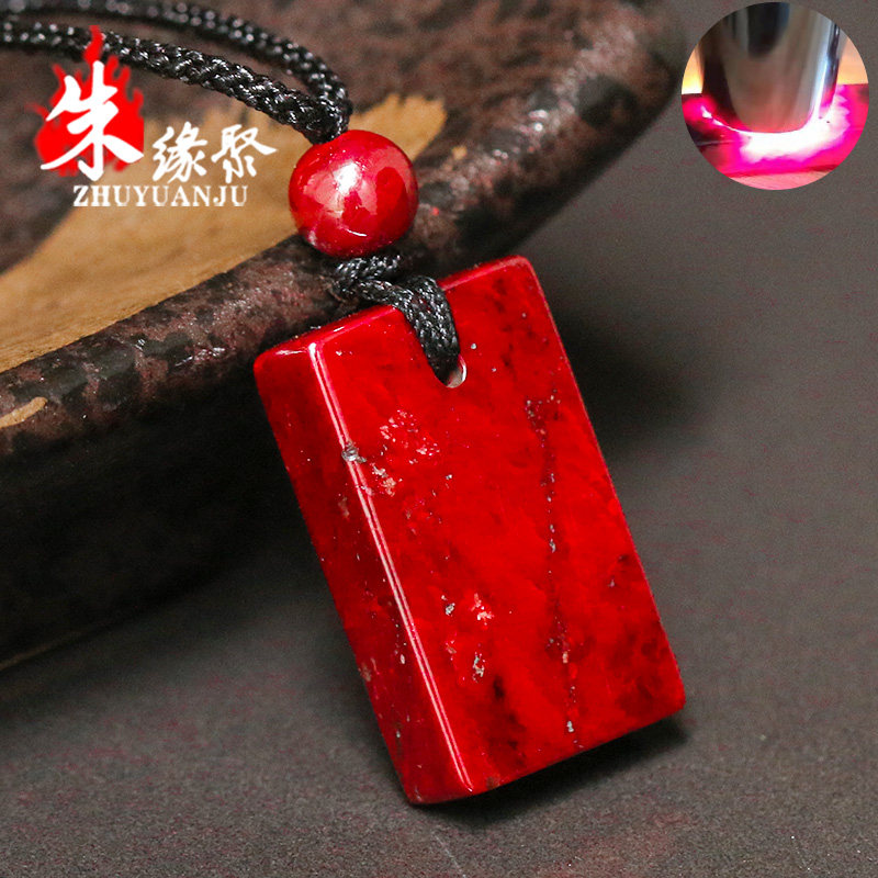 真朱砂原石吊坠官方旗舰店部分透光手工打磨无事牌男女款马年挂件