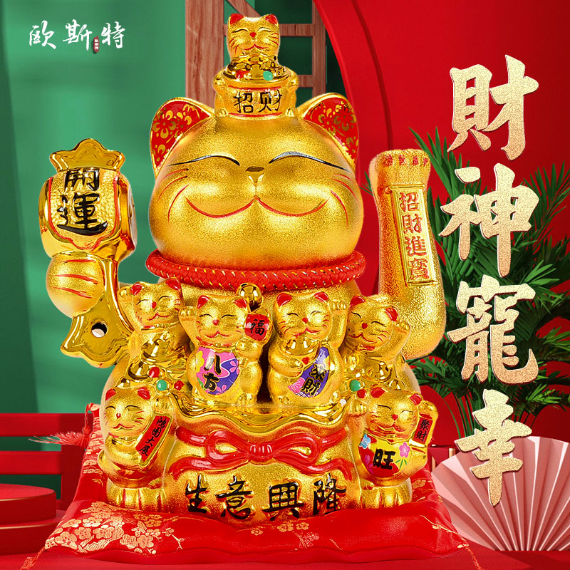 欧斯特 招财猫摆件开业 家用摇手存钱罐发财猫 客厅乔迁新居礼品