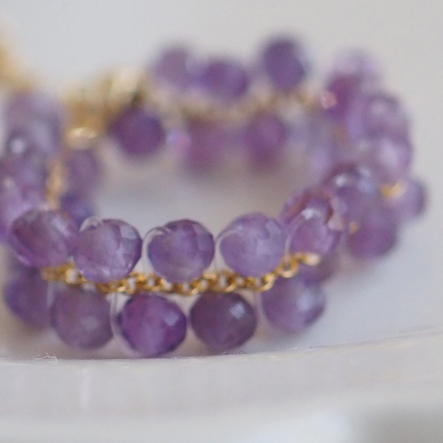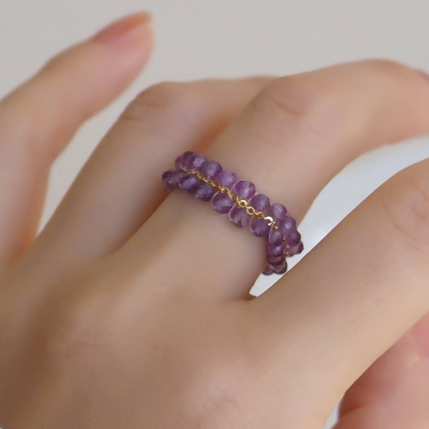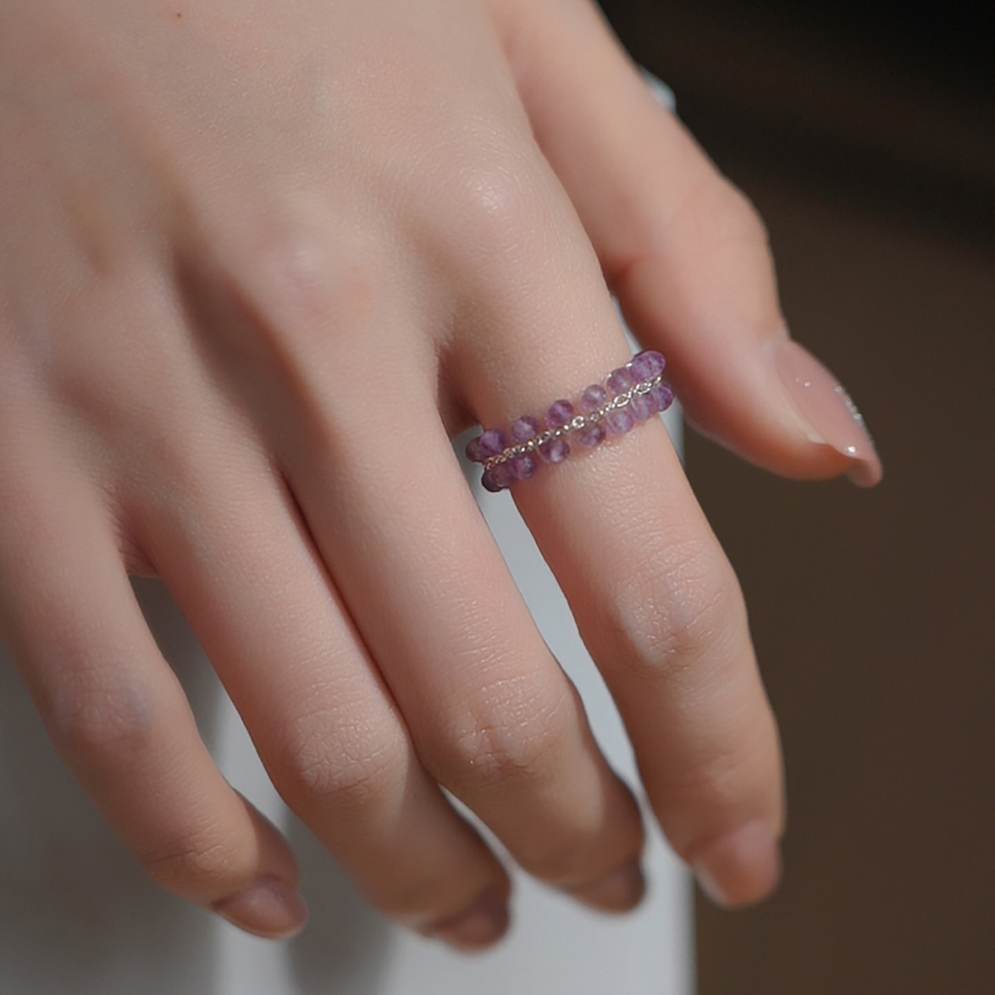 2月生辰石小众设计静谧天然紫水晶戒指女款弹力纯手工戒指可调节
